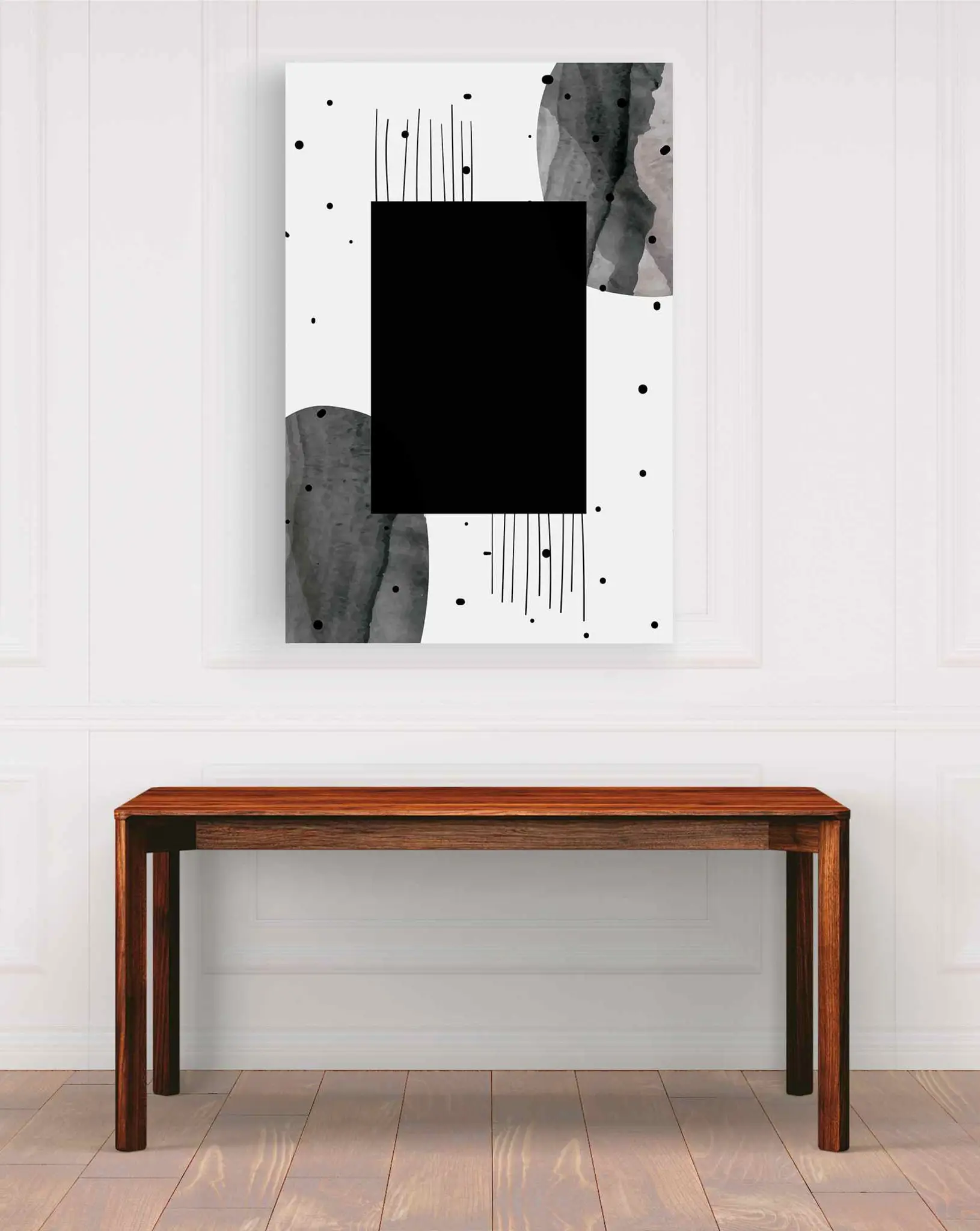 Cuadro en lienzo canvas decorativo estilo acuarela con rectángulo en blanco y negro