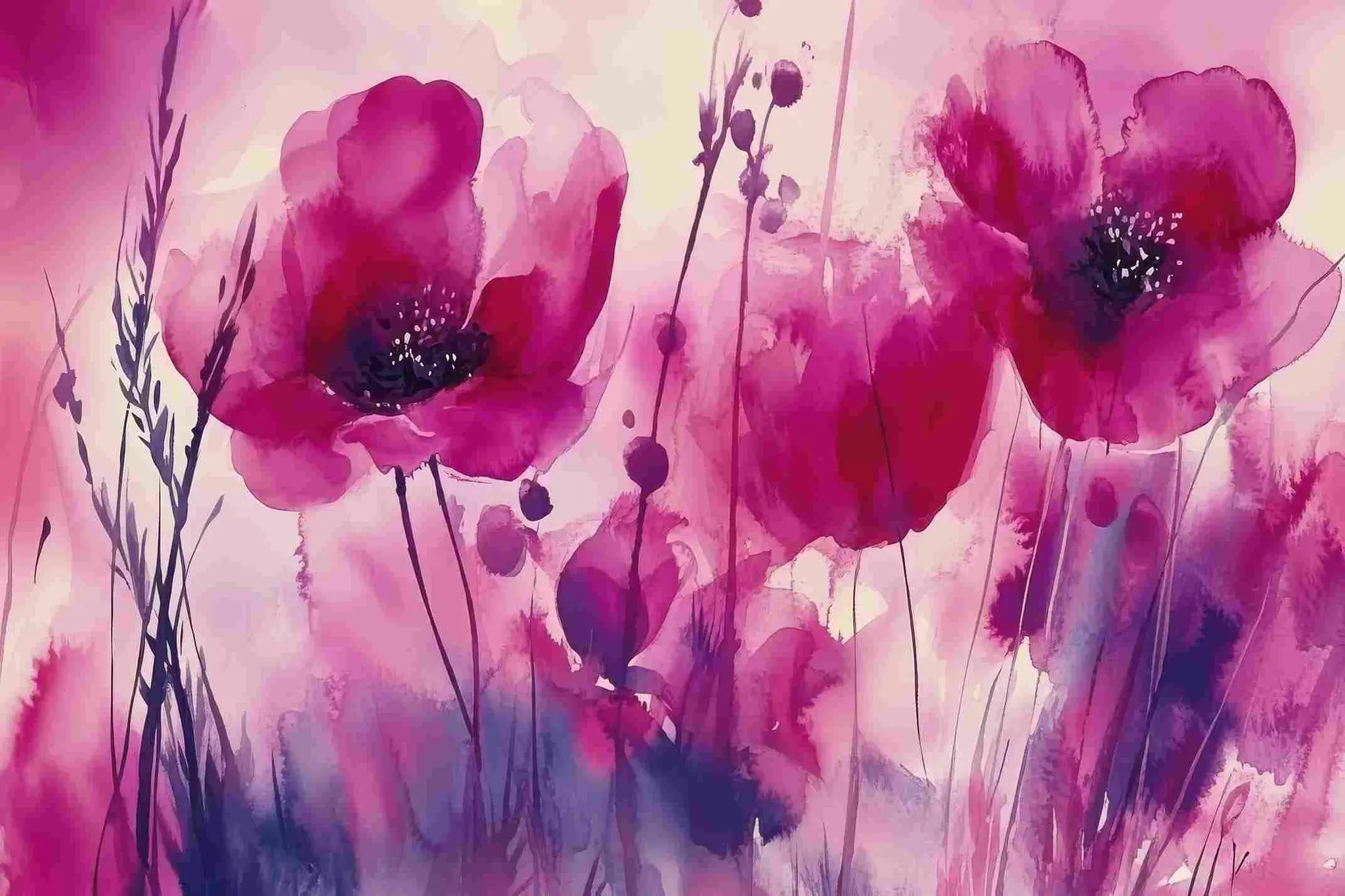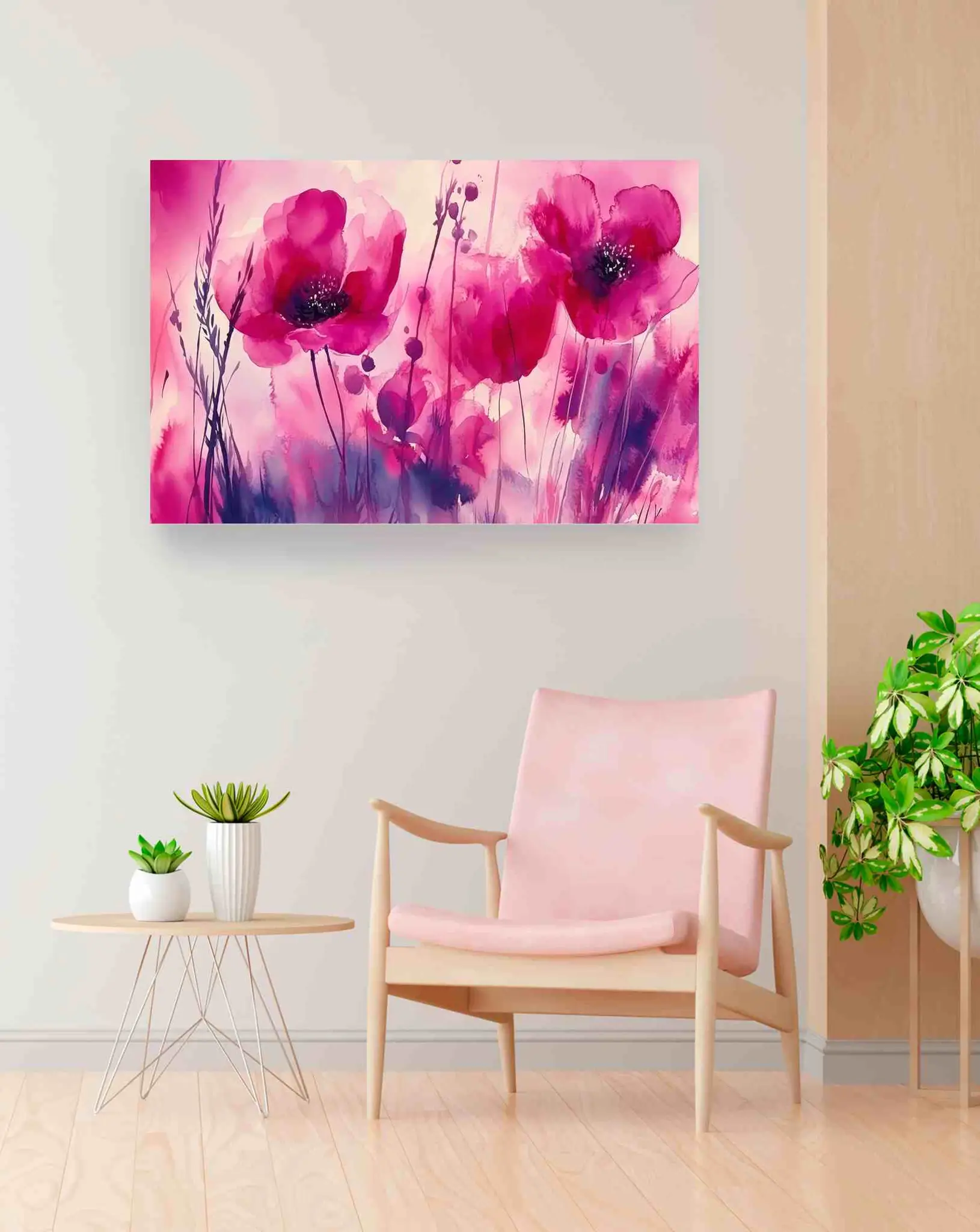 Cuadro en lienzo canvas decorativo con diseño de hermosas amapolas rosas