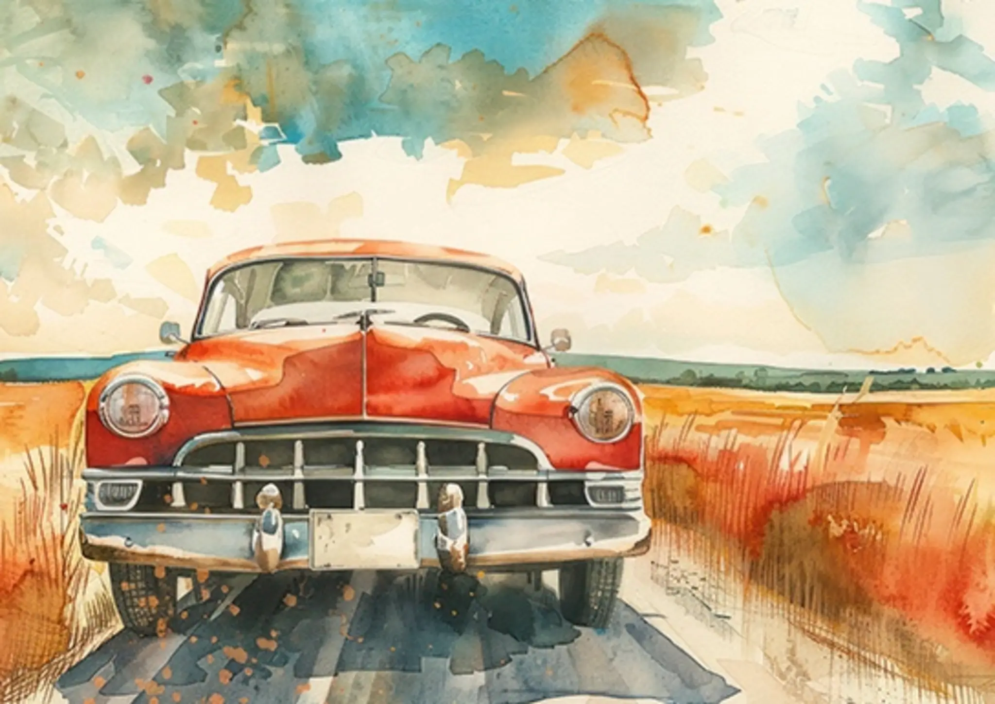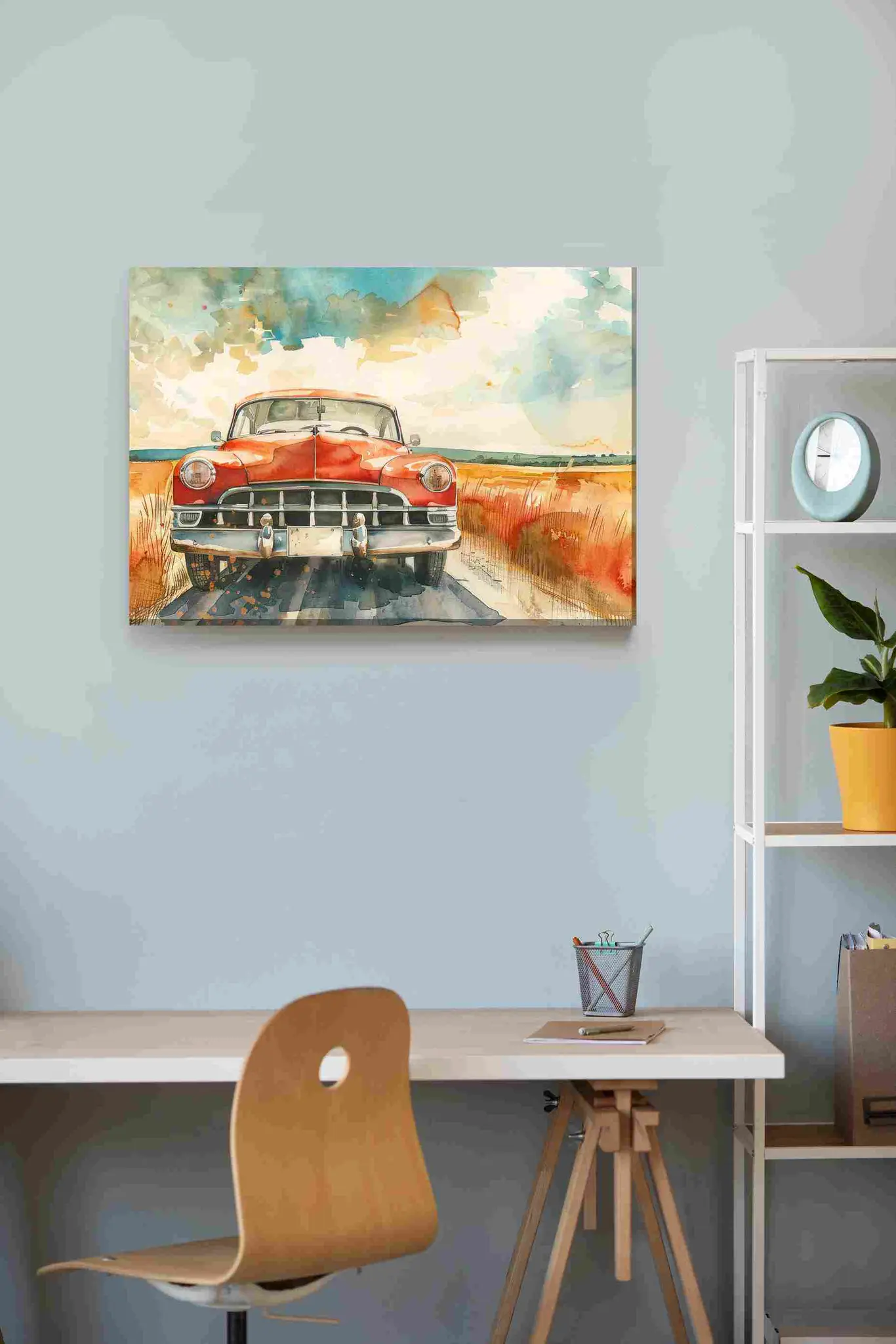 Cuadro en lienzo canvas decorativo auto sobre la carretera estilo acuarela