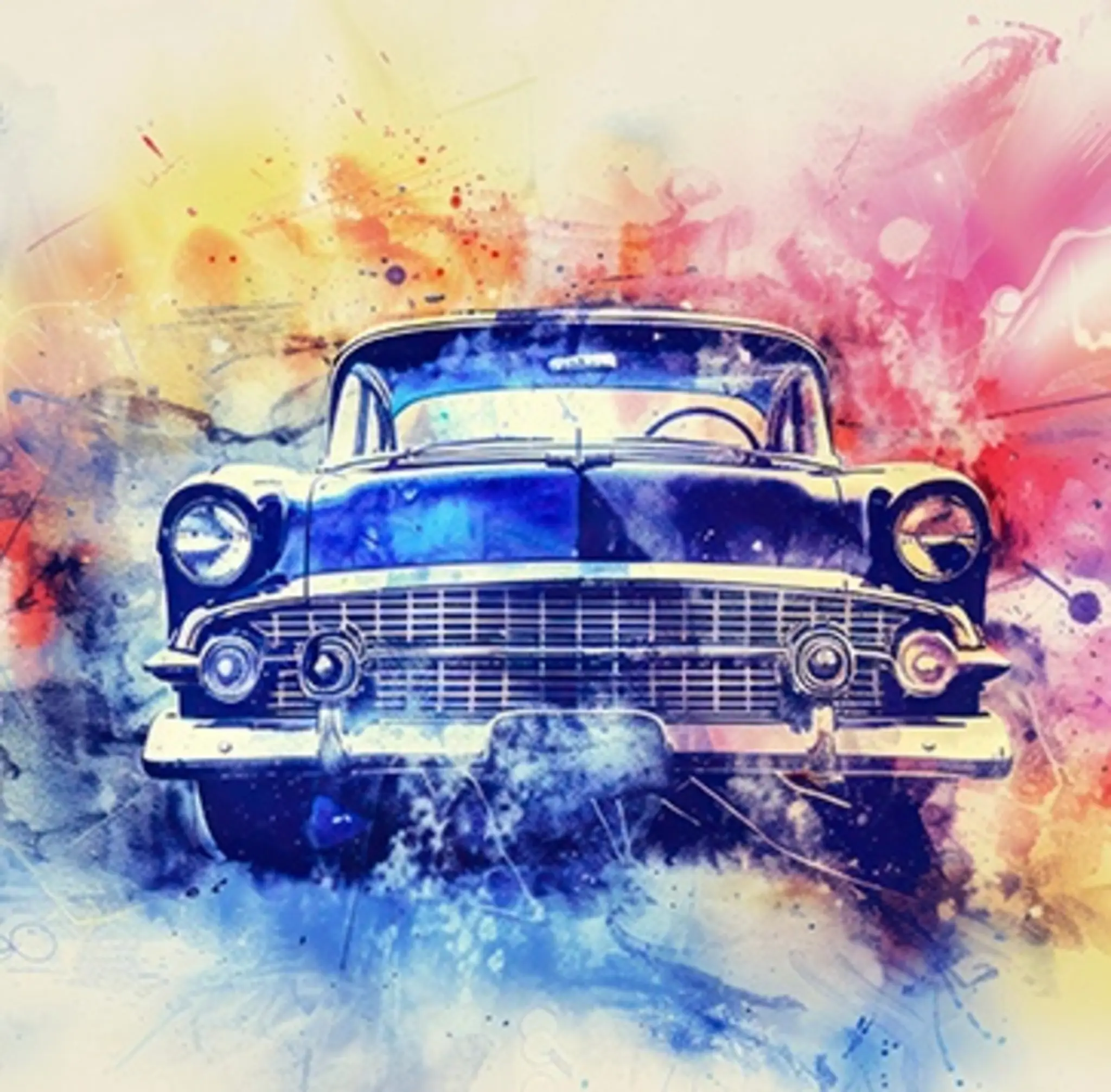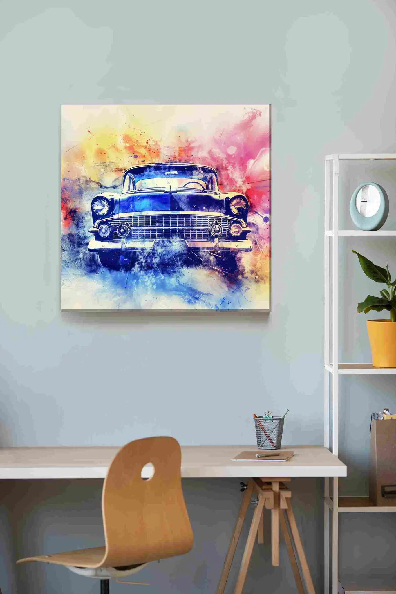 Cuadro en lienzo canvas decorativo impresionante auto clásico tono azul
