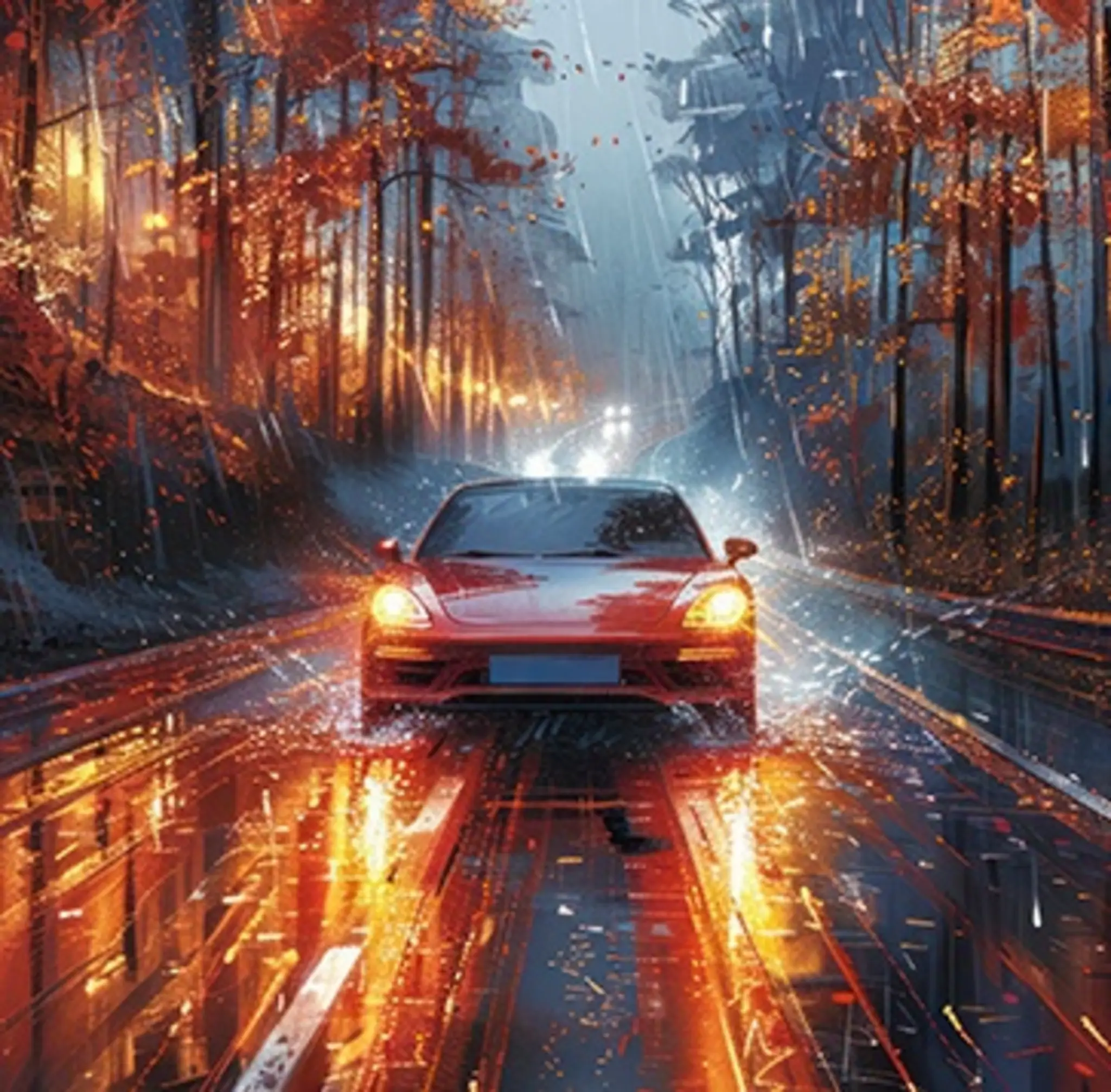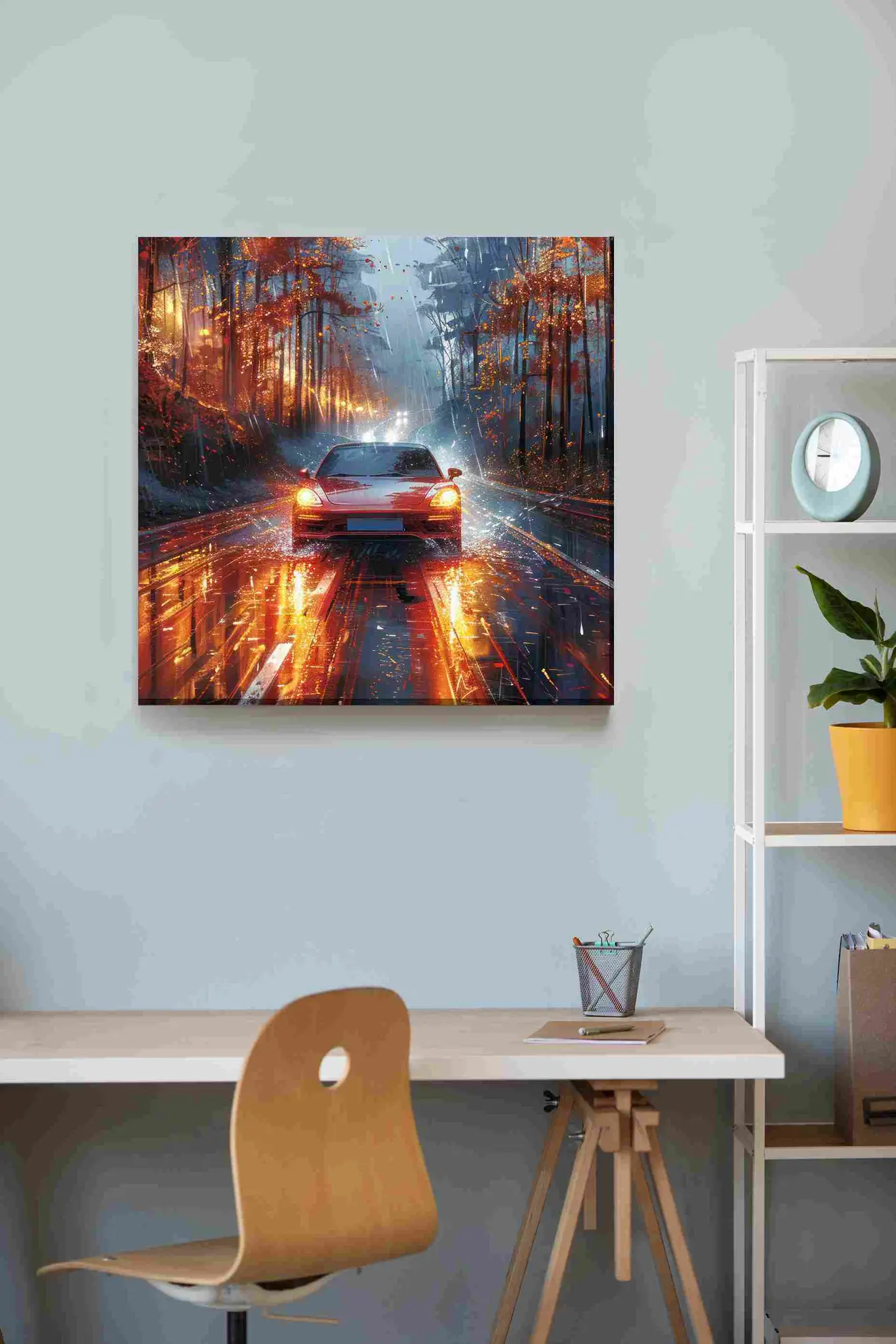Cuadro en lienzo canvas decorativo automóvil sobre la lluvia estilo acuarela