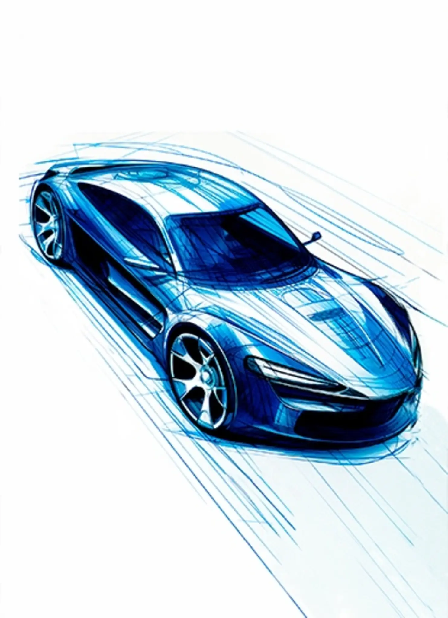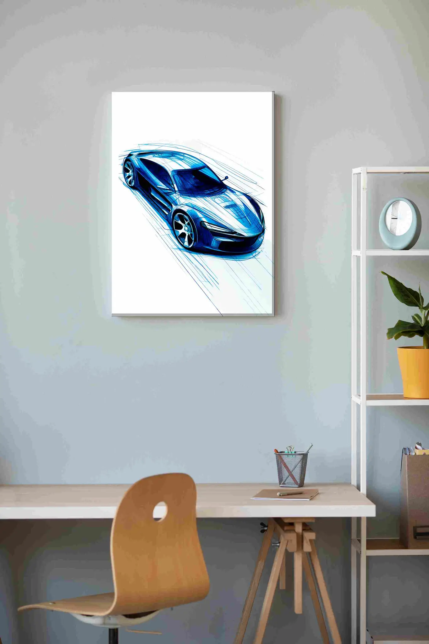 Cuadro en lienzo canvas decorativo auto sketch azul