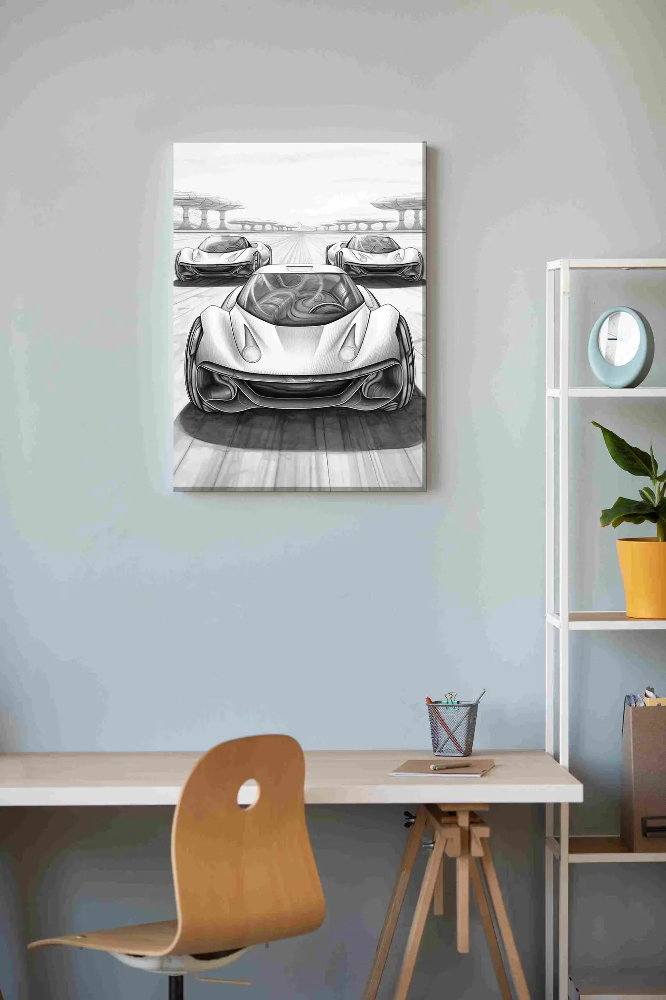 Cuadro en lienzo canvas decorativo auto sketch blanco y negro
