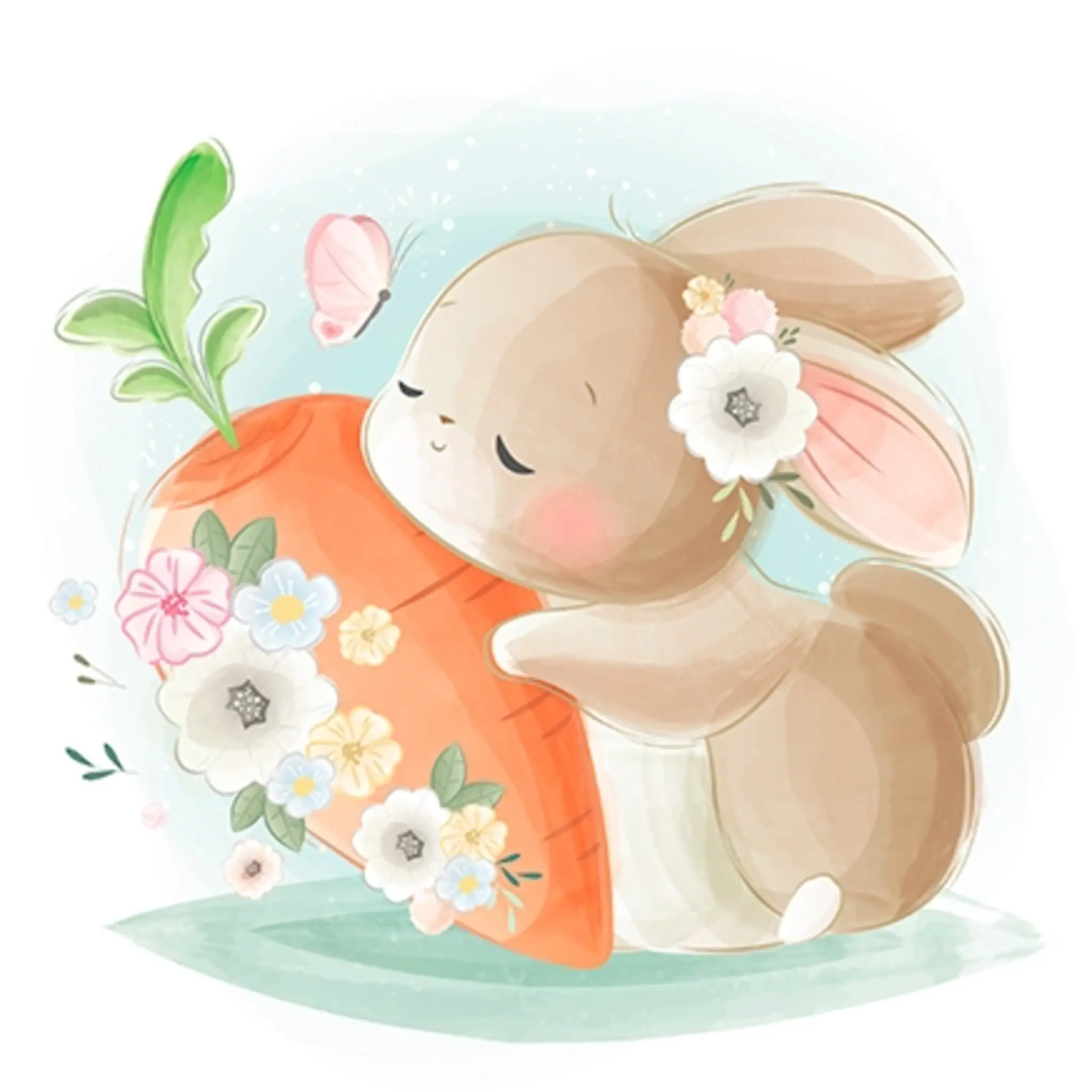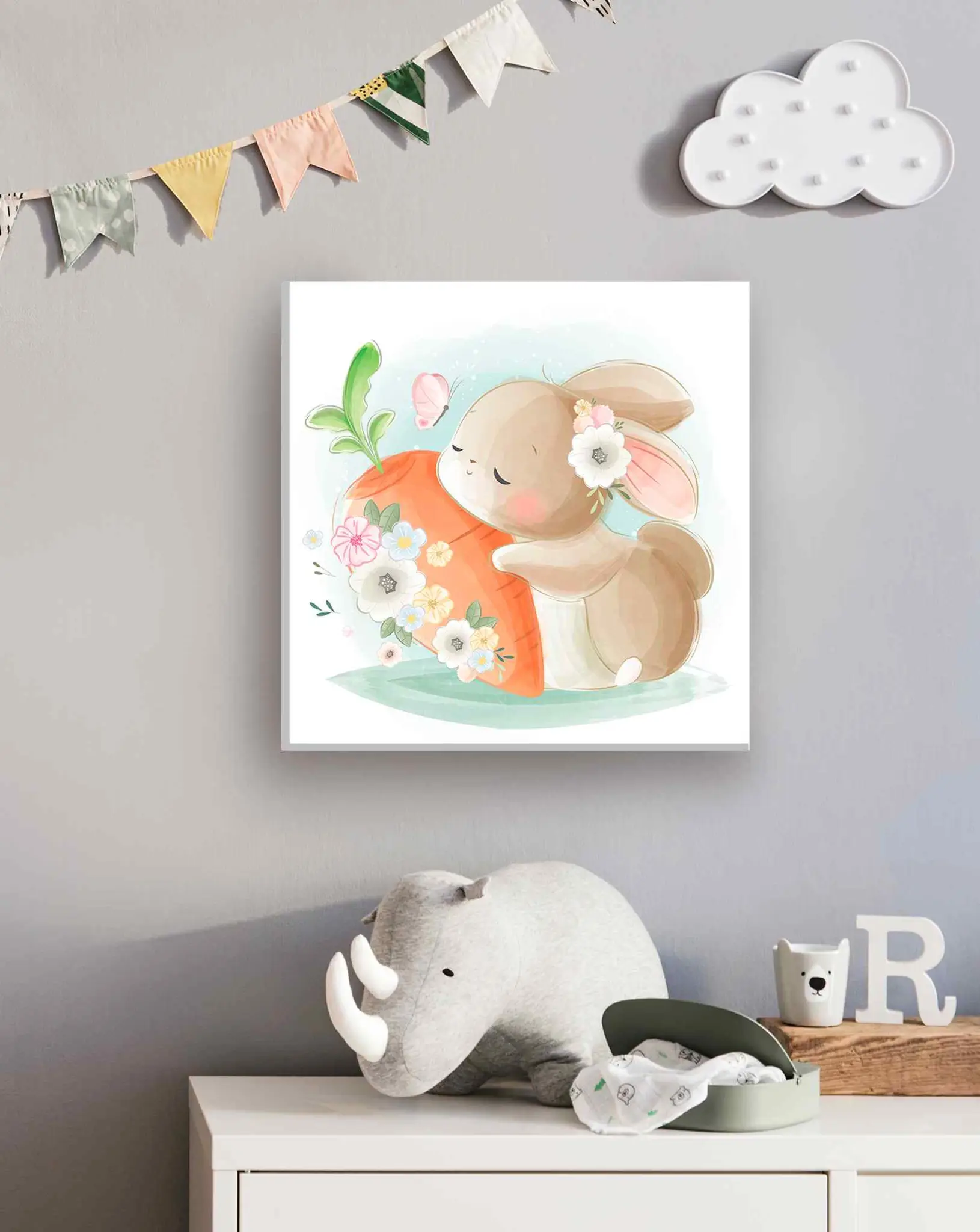 Cuadro en lienzo canvas decorativo bebé conejita con zanahoria