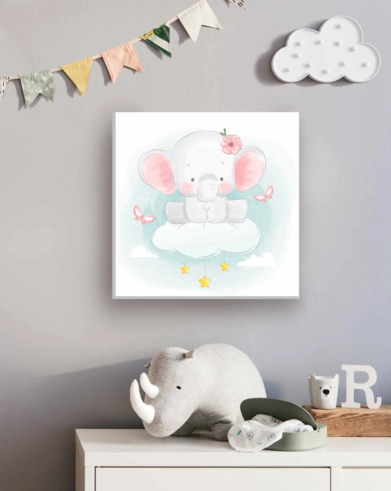 Cuadro en lienzo canvas decorativo bebé elefante sobre las nubes