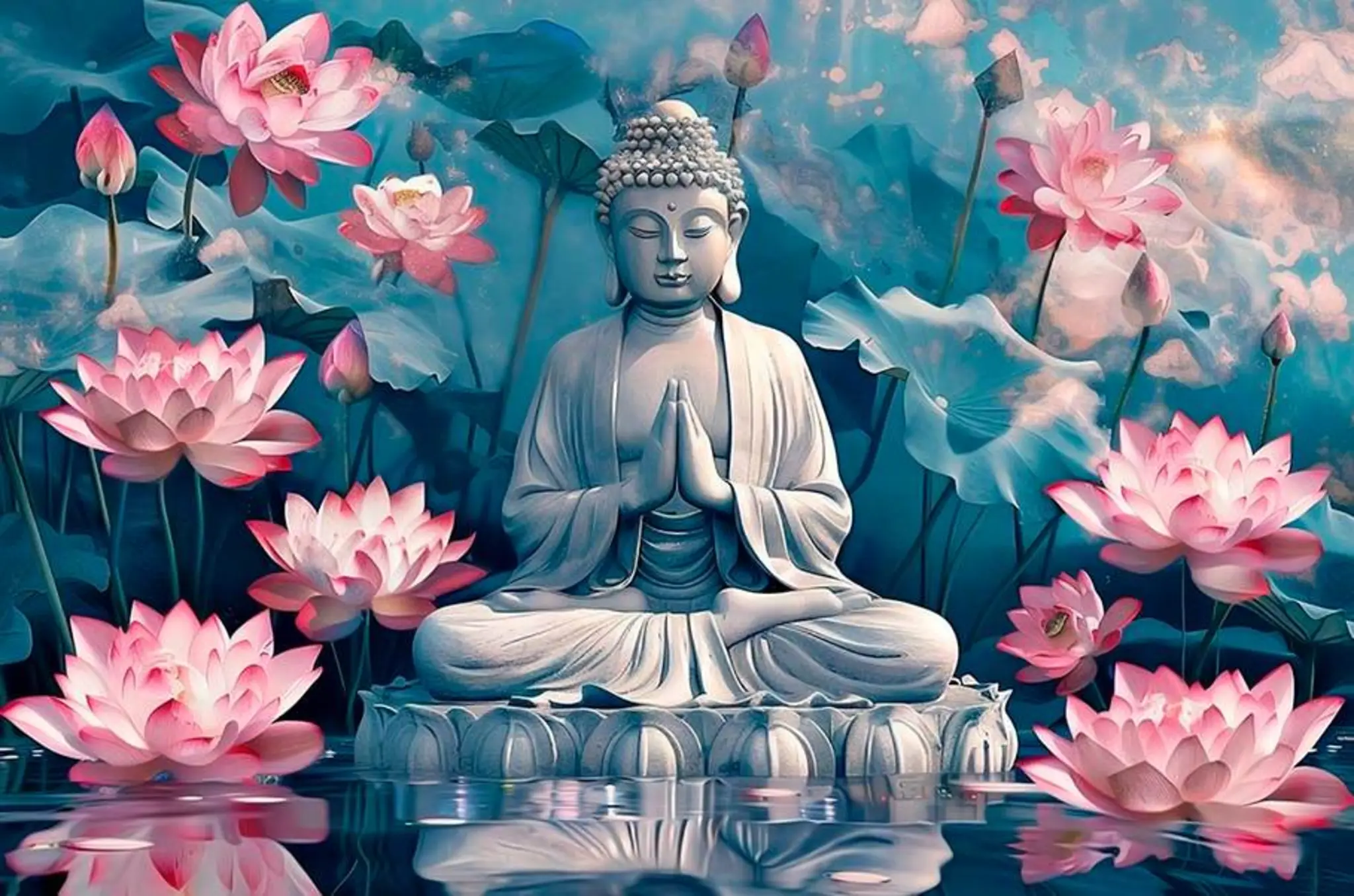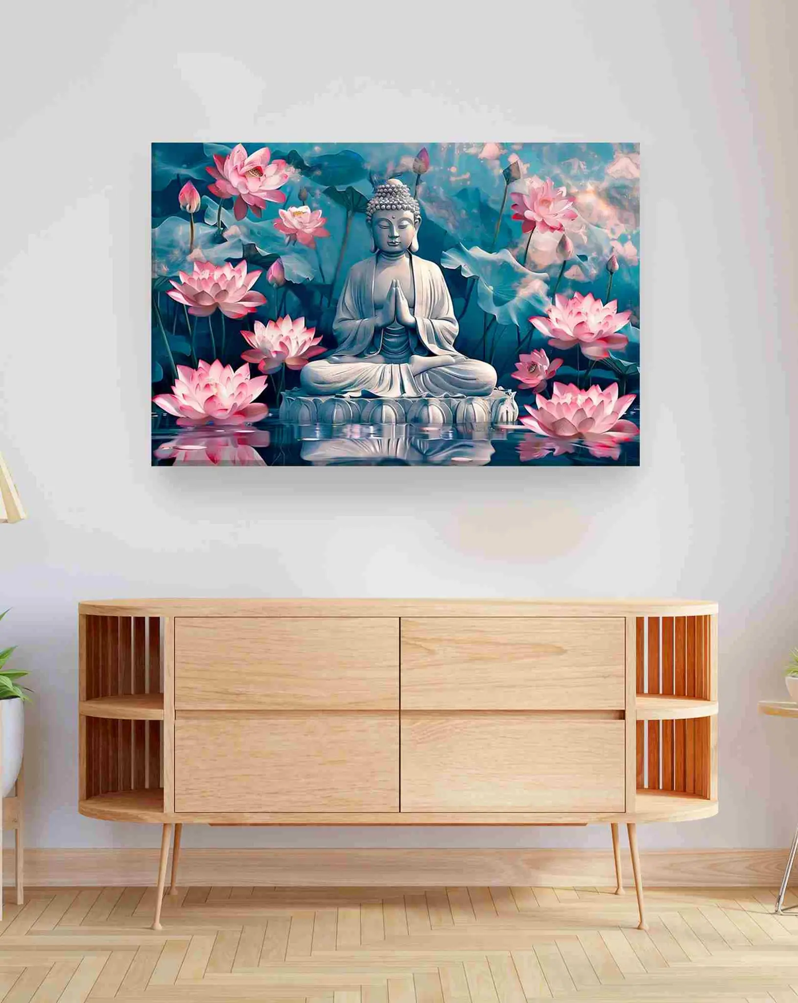 Cuadro en lienzo canvas decorativo buda rodeado de flores de loto