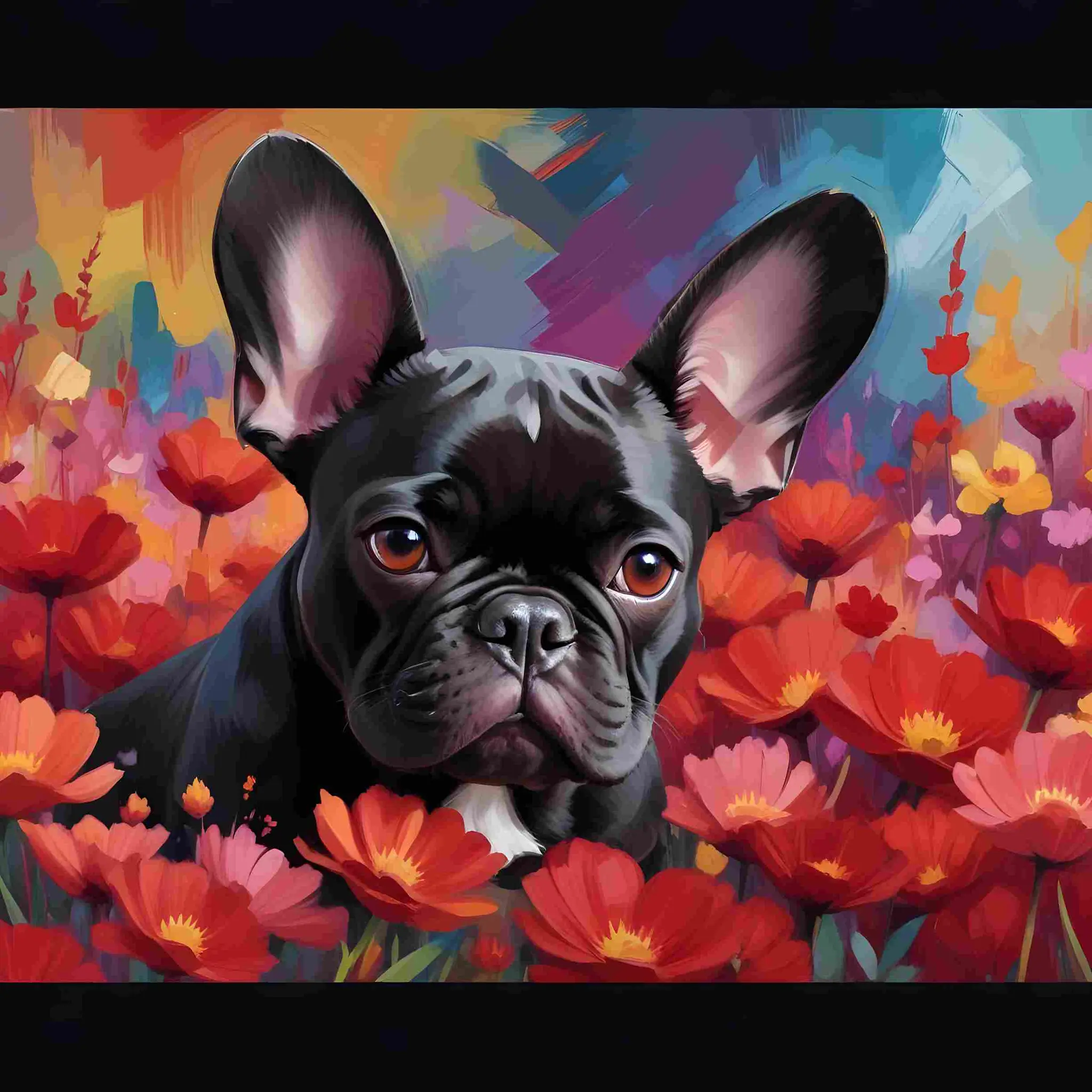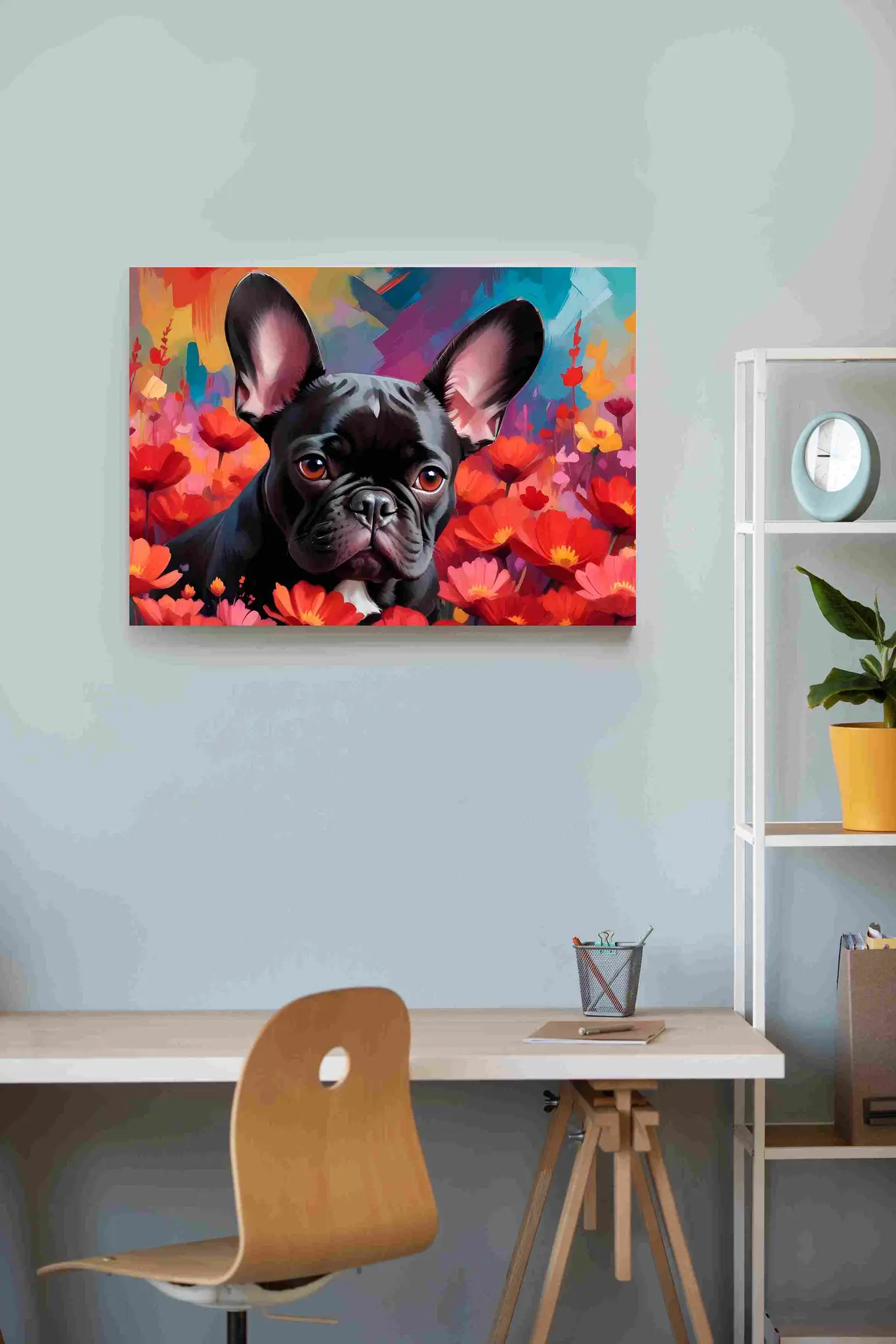 Cuadro en lienzo canvas decorativo bulldog frances rodeado de flores