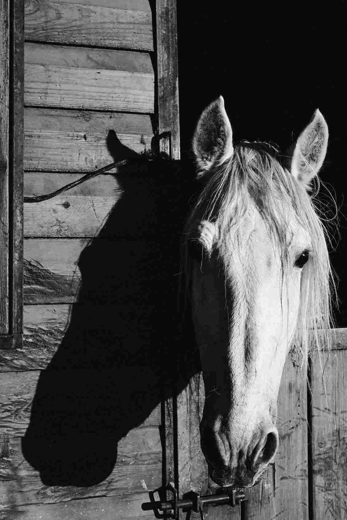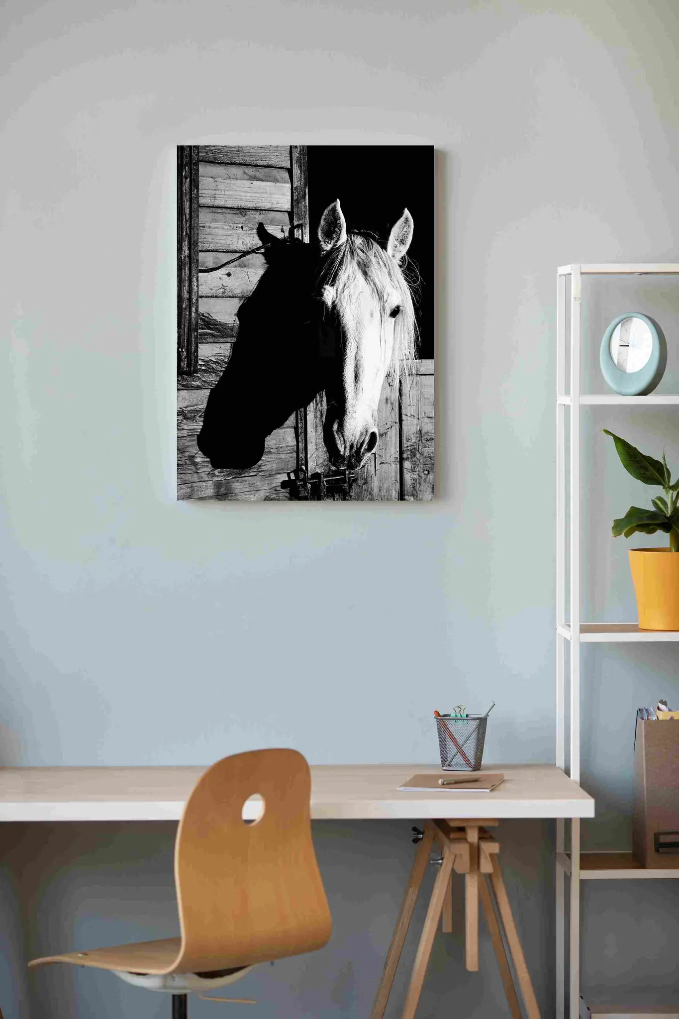 Cuadro en lienzo canvas decorativo caballo en granero blanco y negro