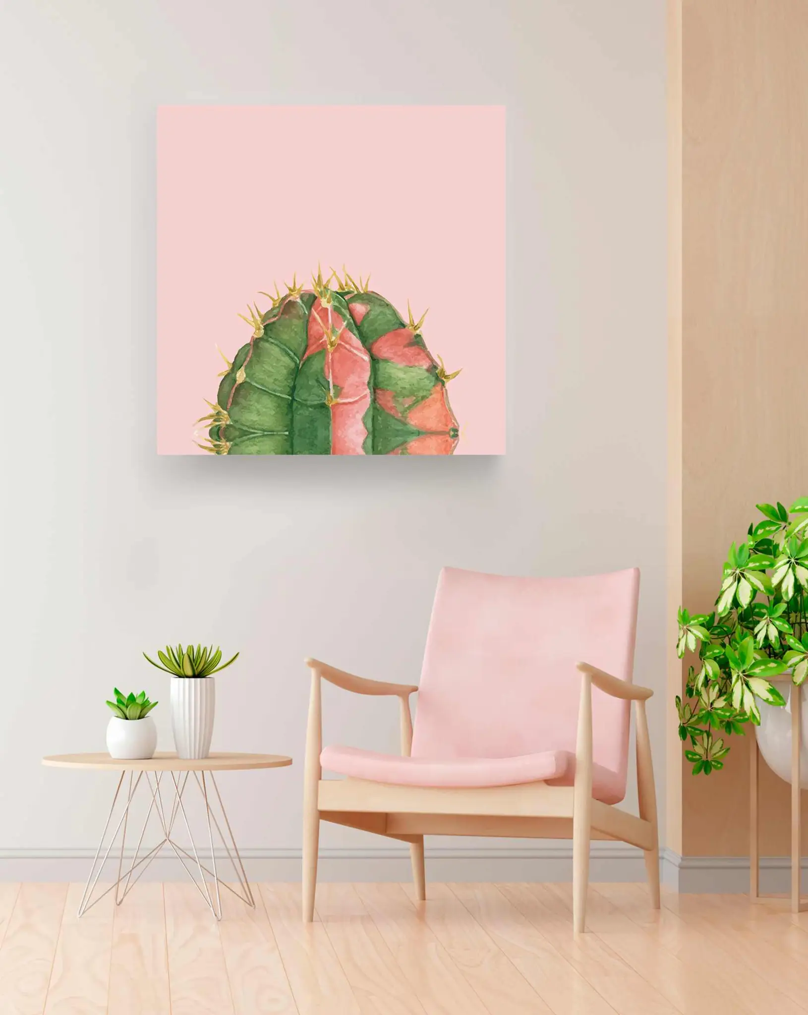 Cuadro en lienzo canvas decorativo cactus con tonos rosa