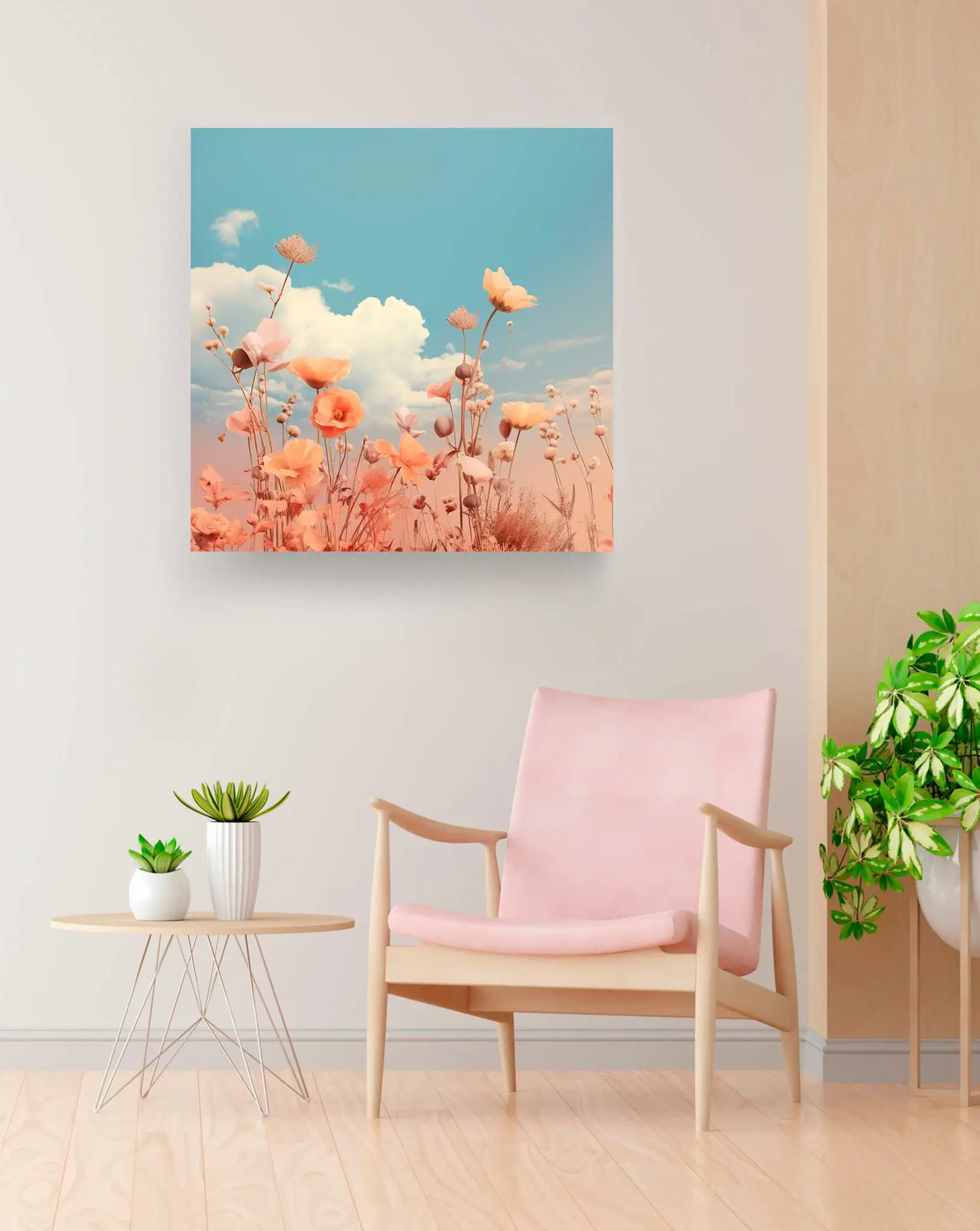 Cuadro en lienzo canvas decorativo campo con delicadas flores rosas