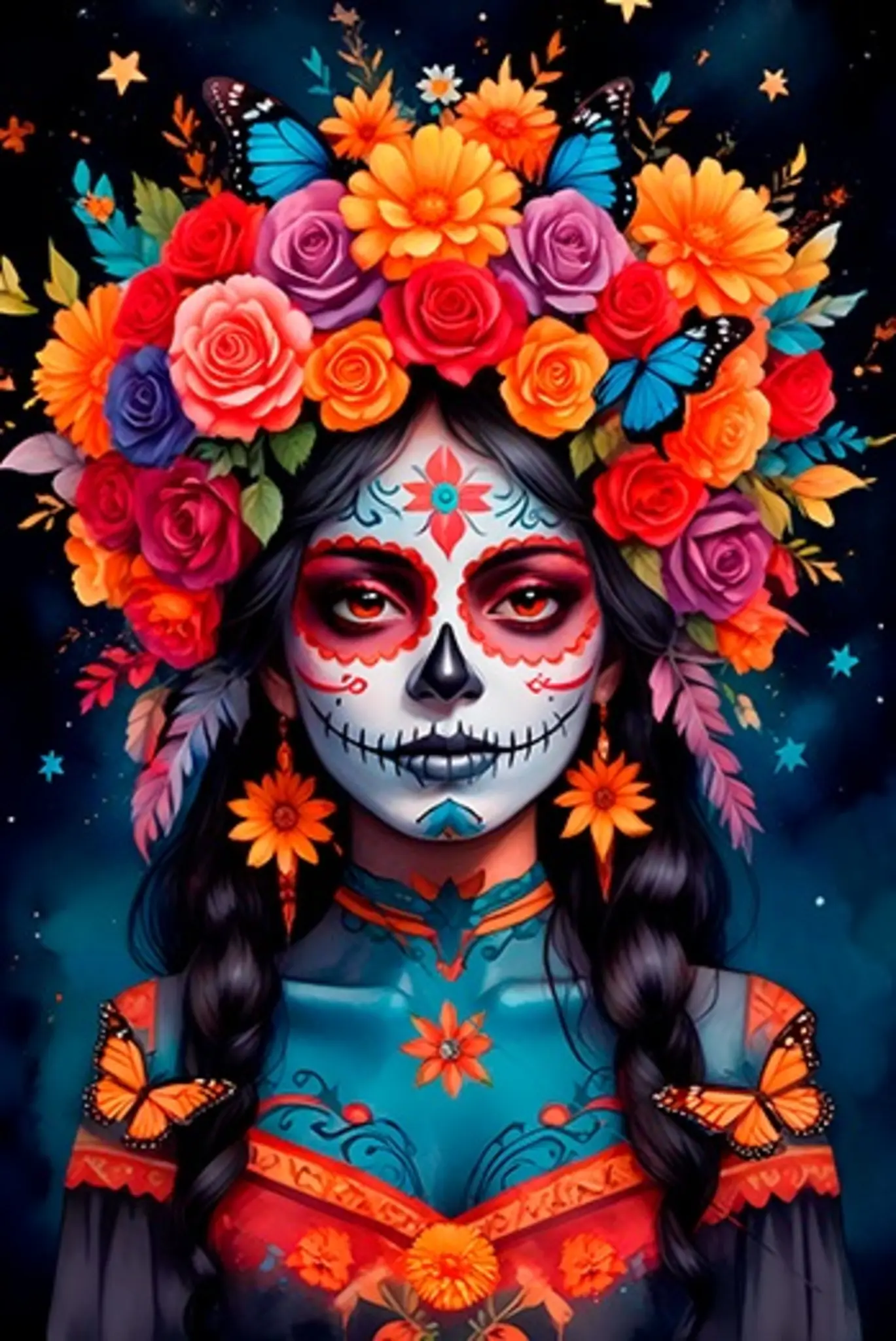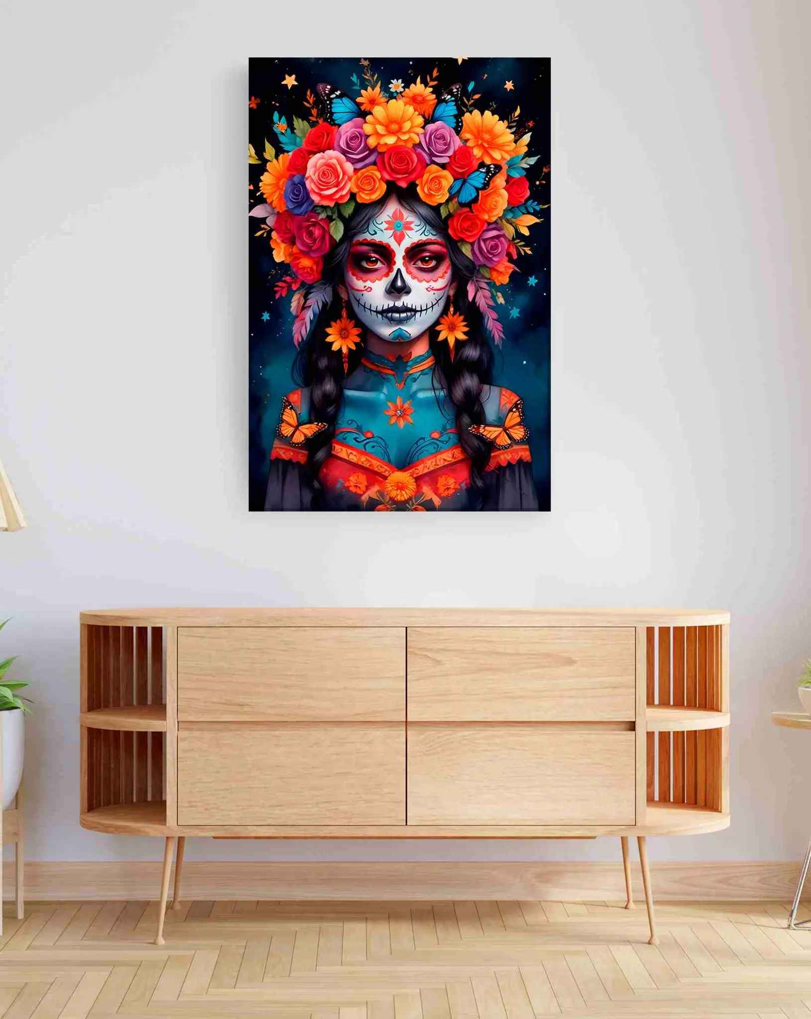 Cuadro en lienzo canvas decorativo hermosa catrina con fondo obscuro