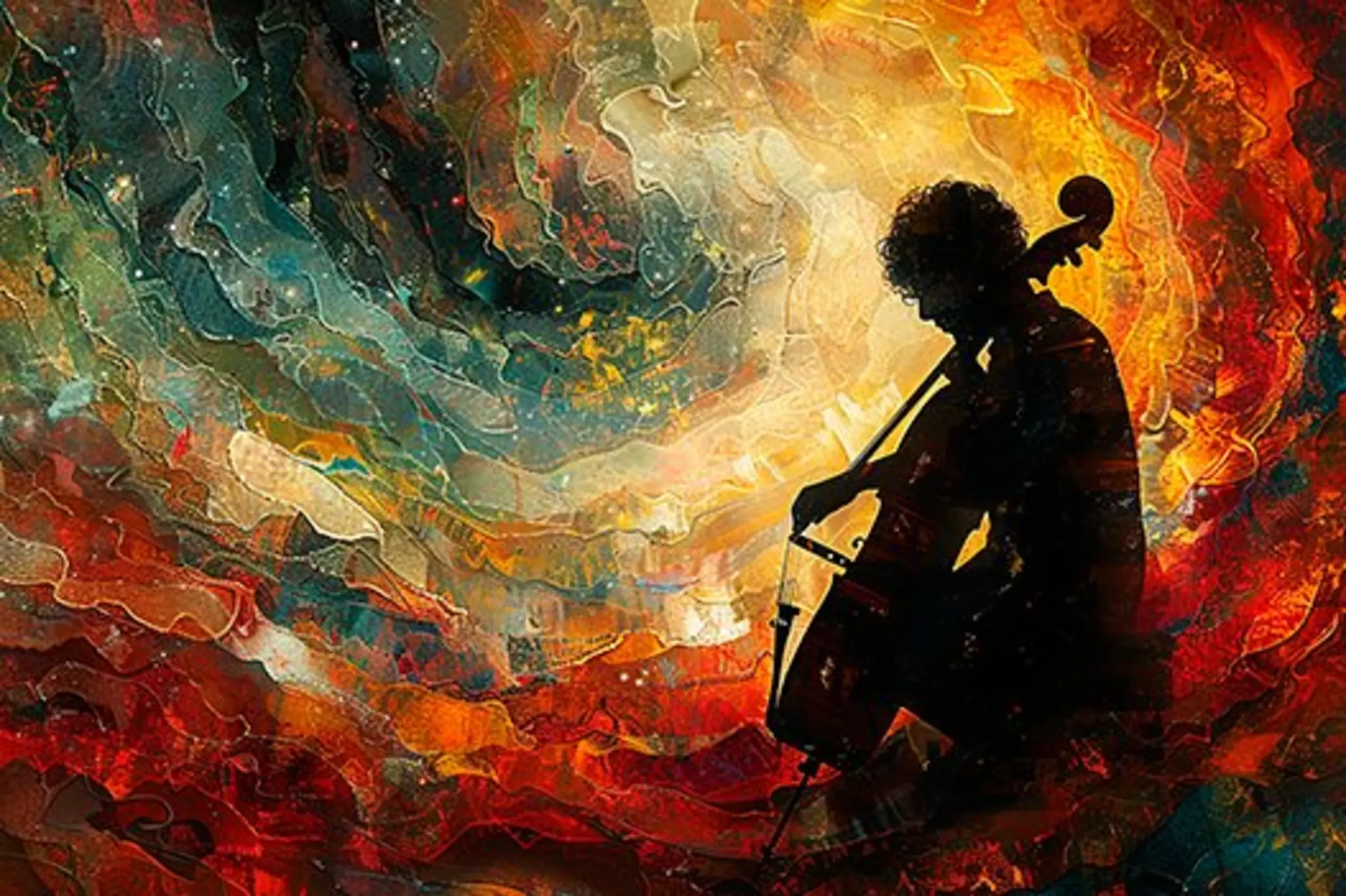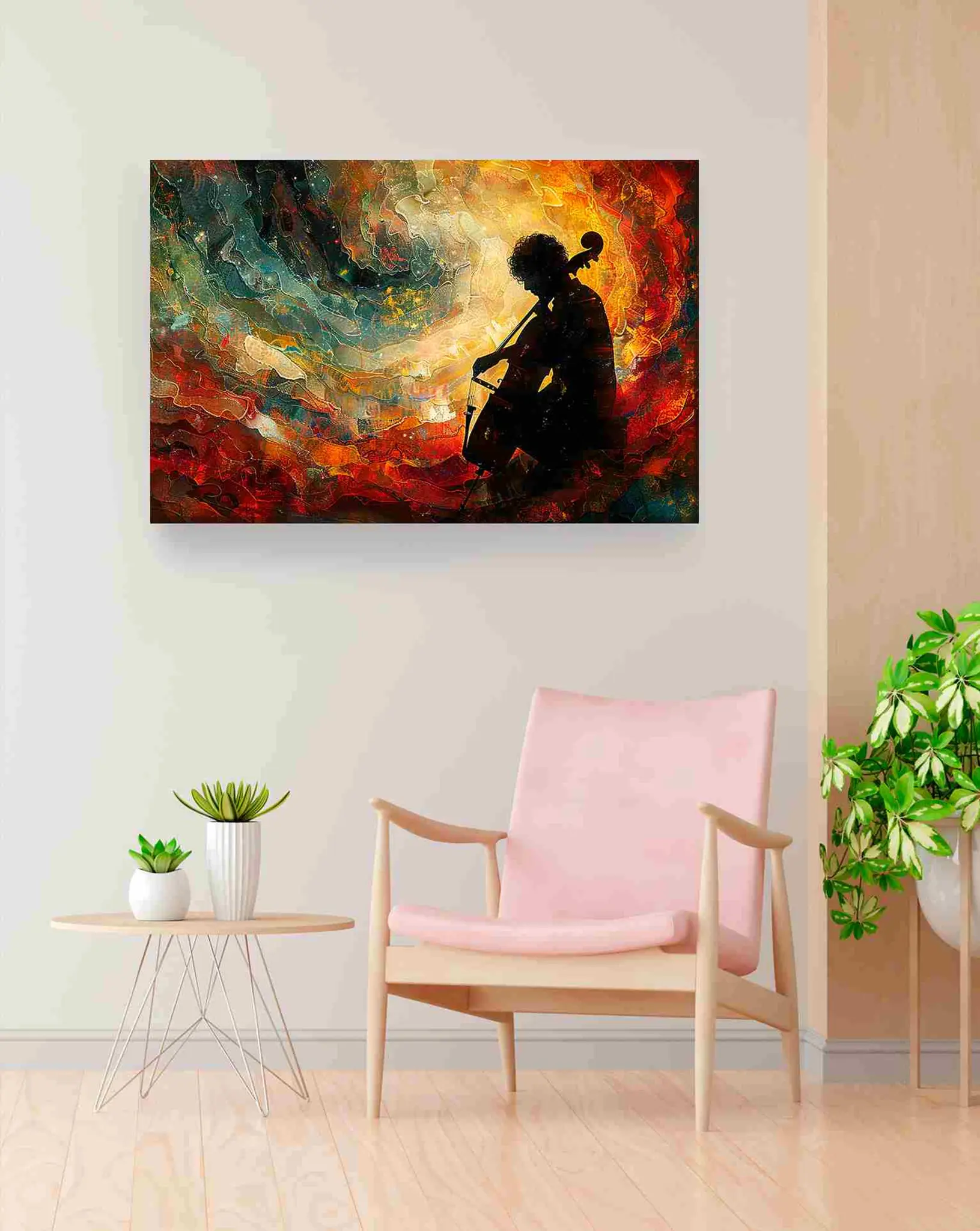 Cuadro en lienzo canvas decorativo chelista en el universo