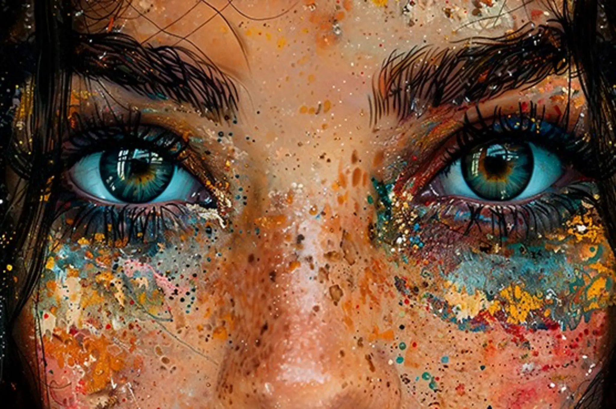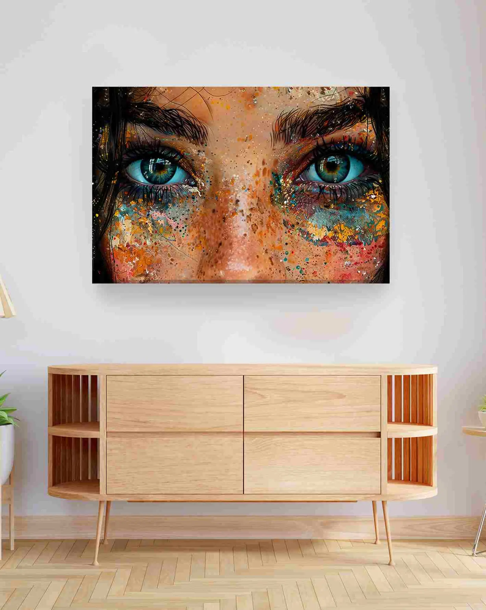 Cuadro en lienzo canvas decorativo toma de ojos rodeada de manchas en colores