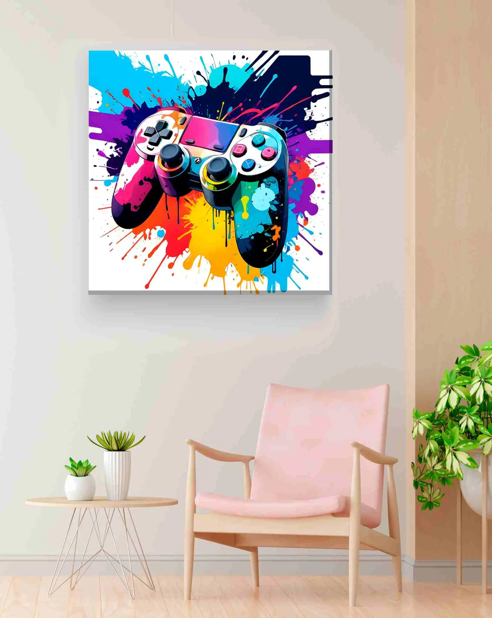 Cuadro en lienzo canvas decorativo control de video juego en explosión de colores