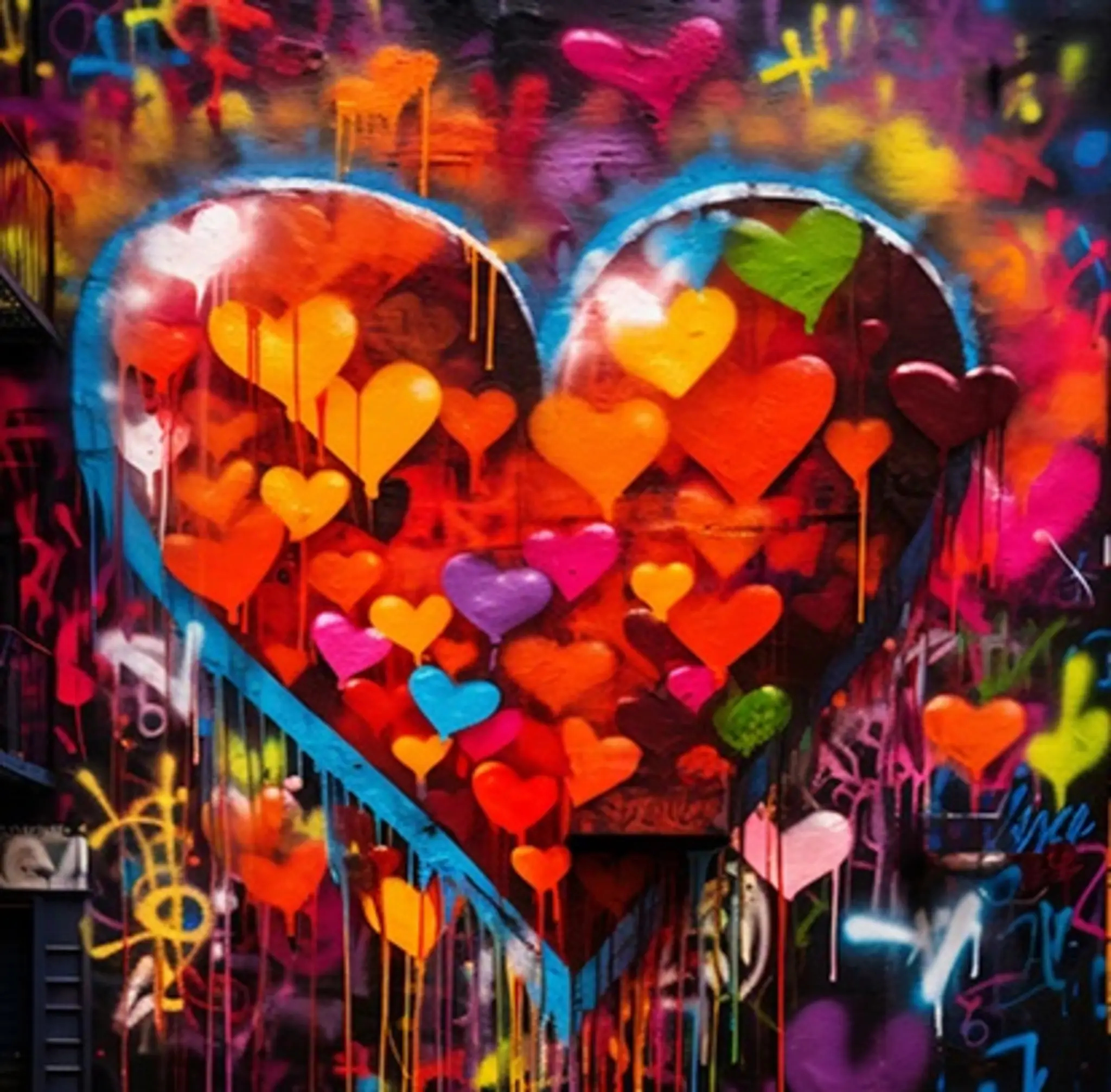 Cuadro en lienzo canvas decorativo corazón saturado de pequeños corazones