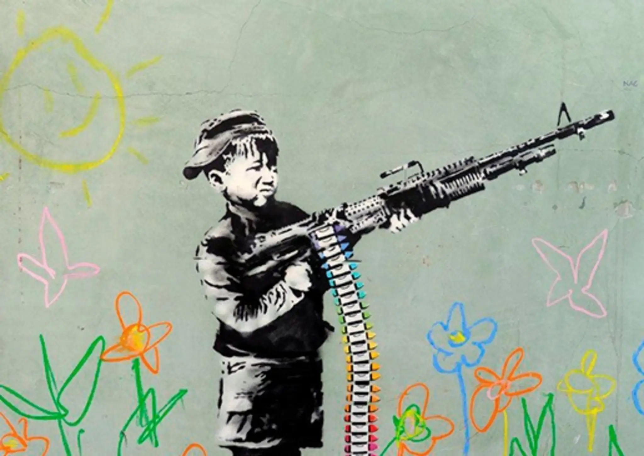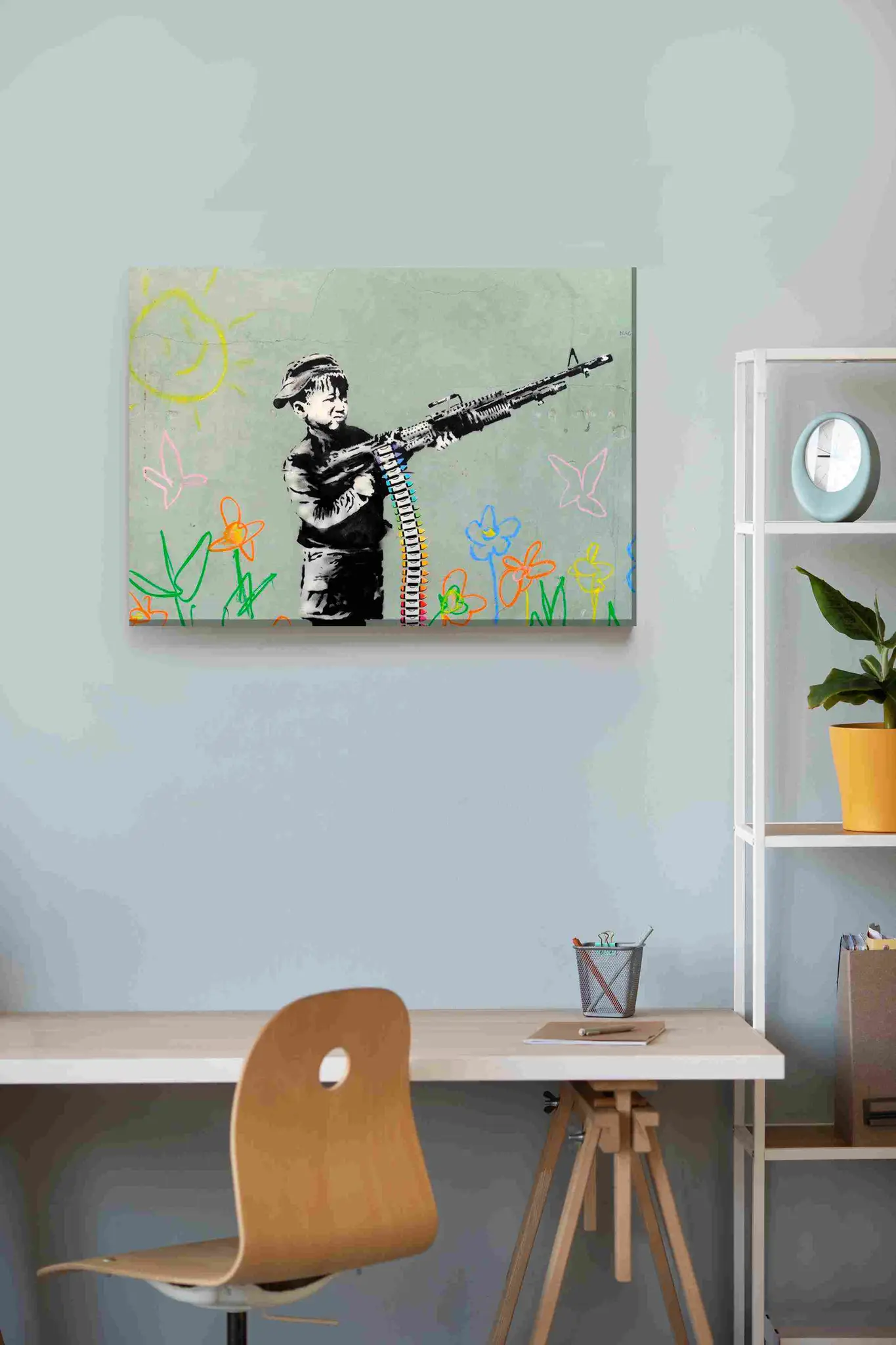Cuadro en lienzo canvas decorativo Banksy niño en guerra