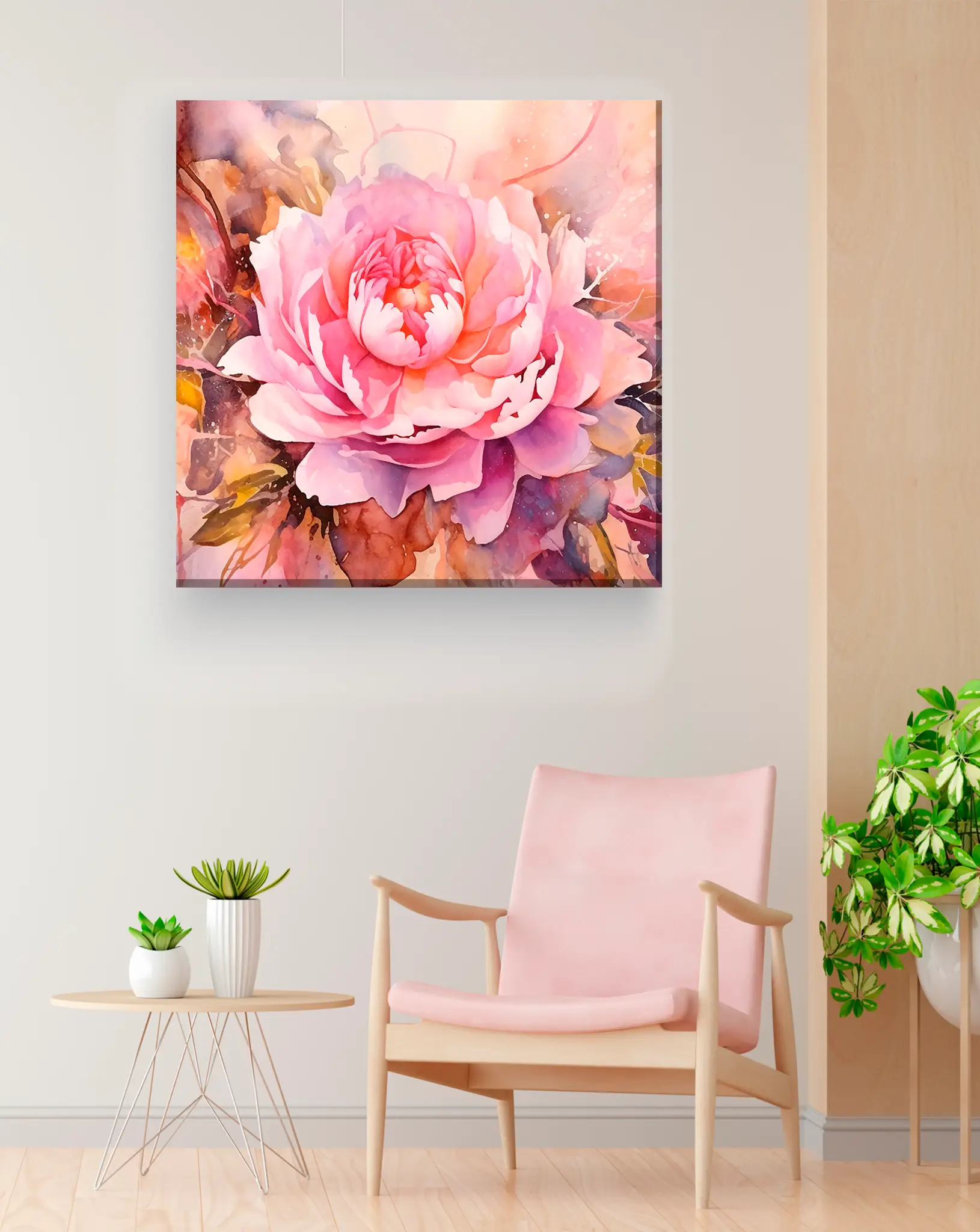 Cuadro en lienzo canvas decorativo crisantemo rosa acuarela