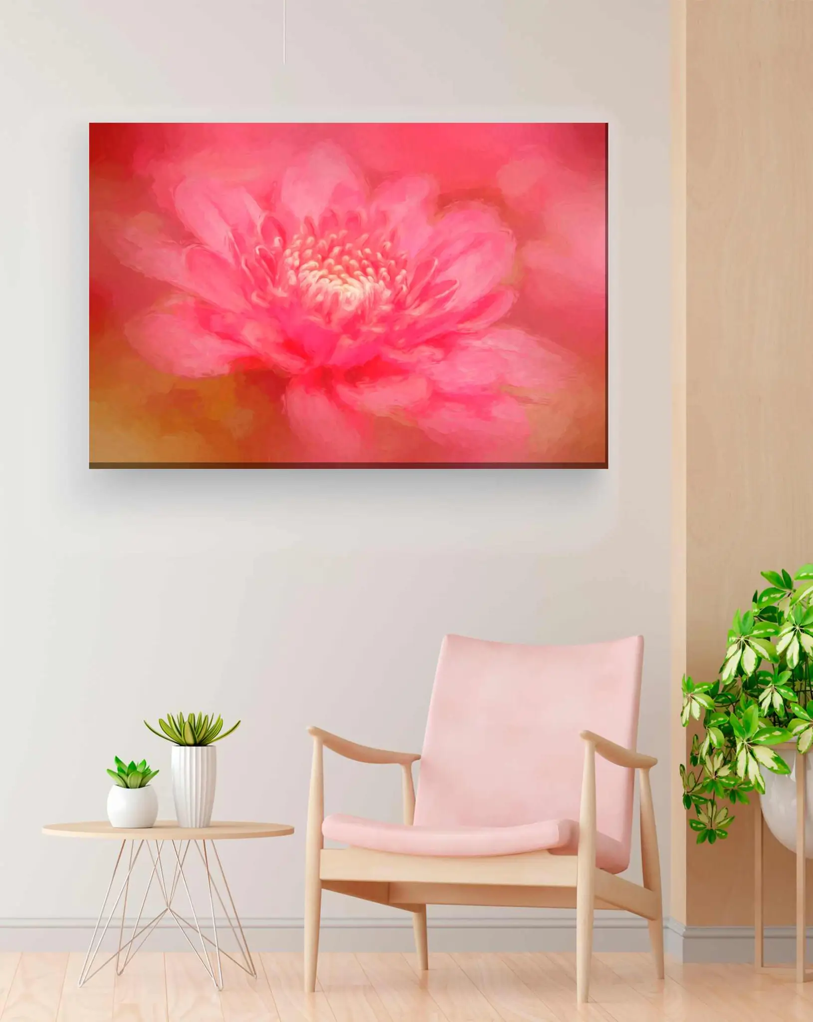 Cuadro en lienzo canvas decorativo crisantemo rosa estilo pinceladas