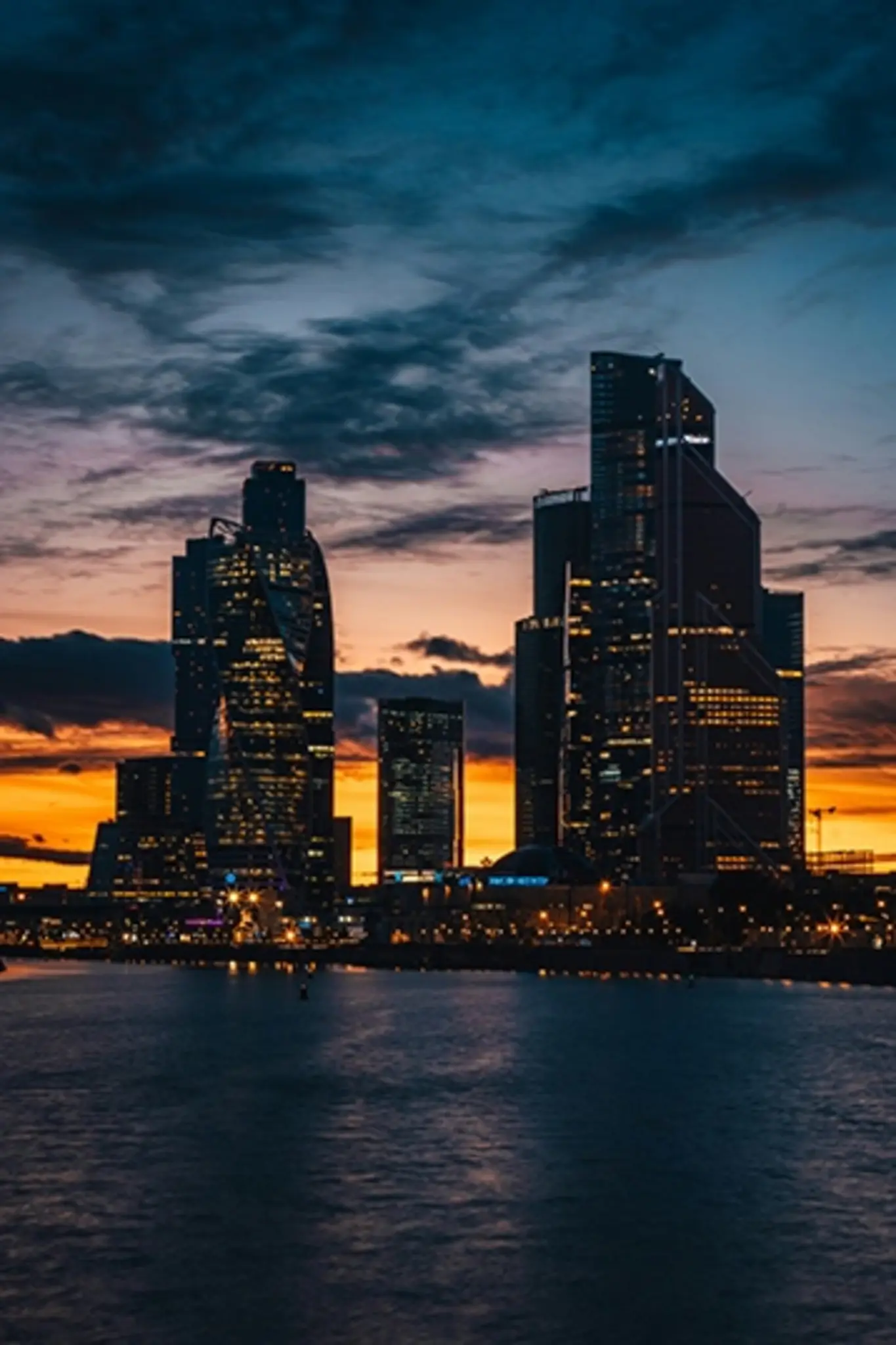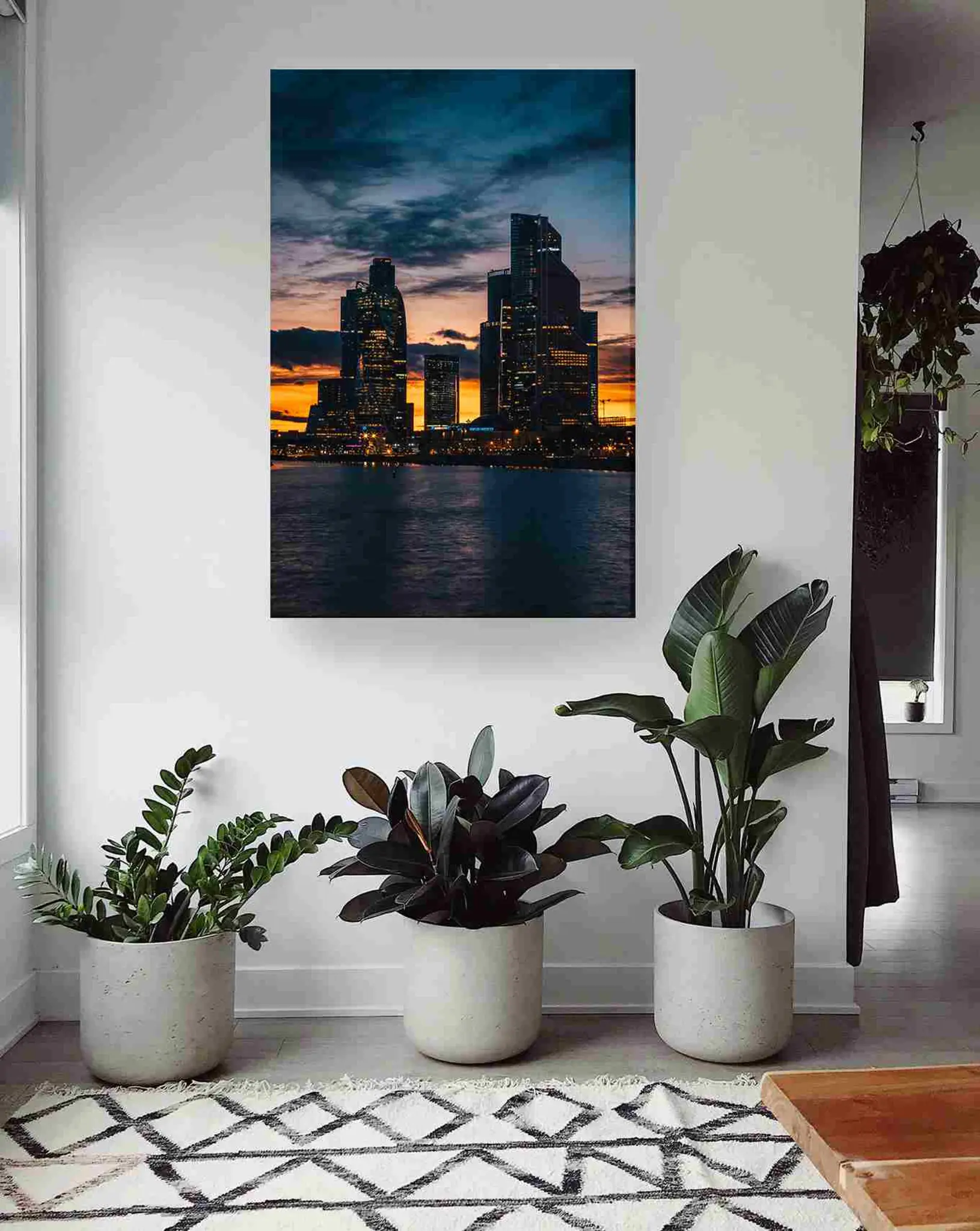 Cuadro en lienzo canvas decorativo edificios con un hermoso atardecer