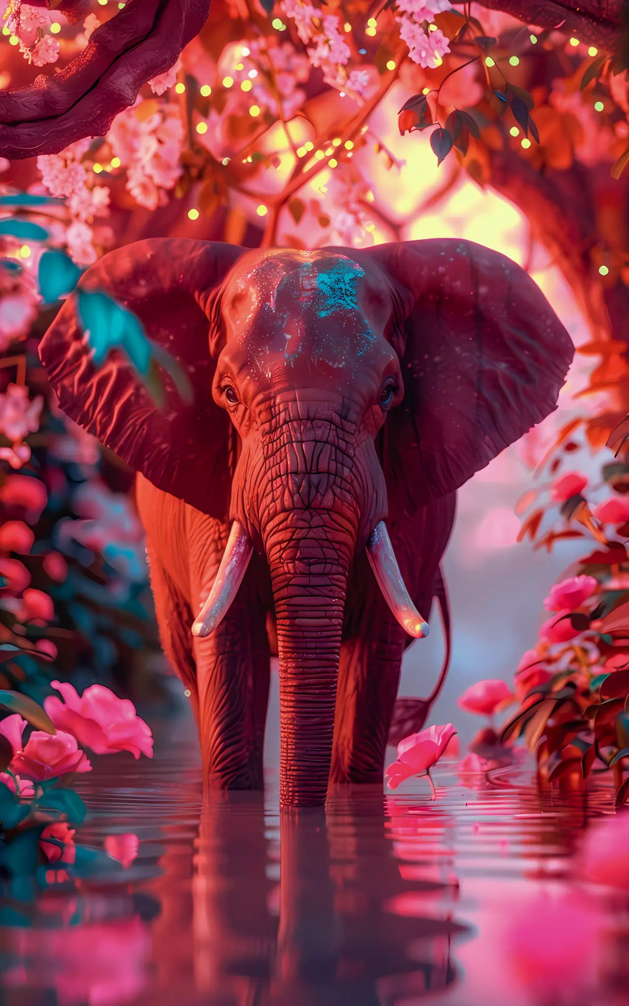 Cuadro en lienzo canvas decorativo elefante caminando con un fondo rosa