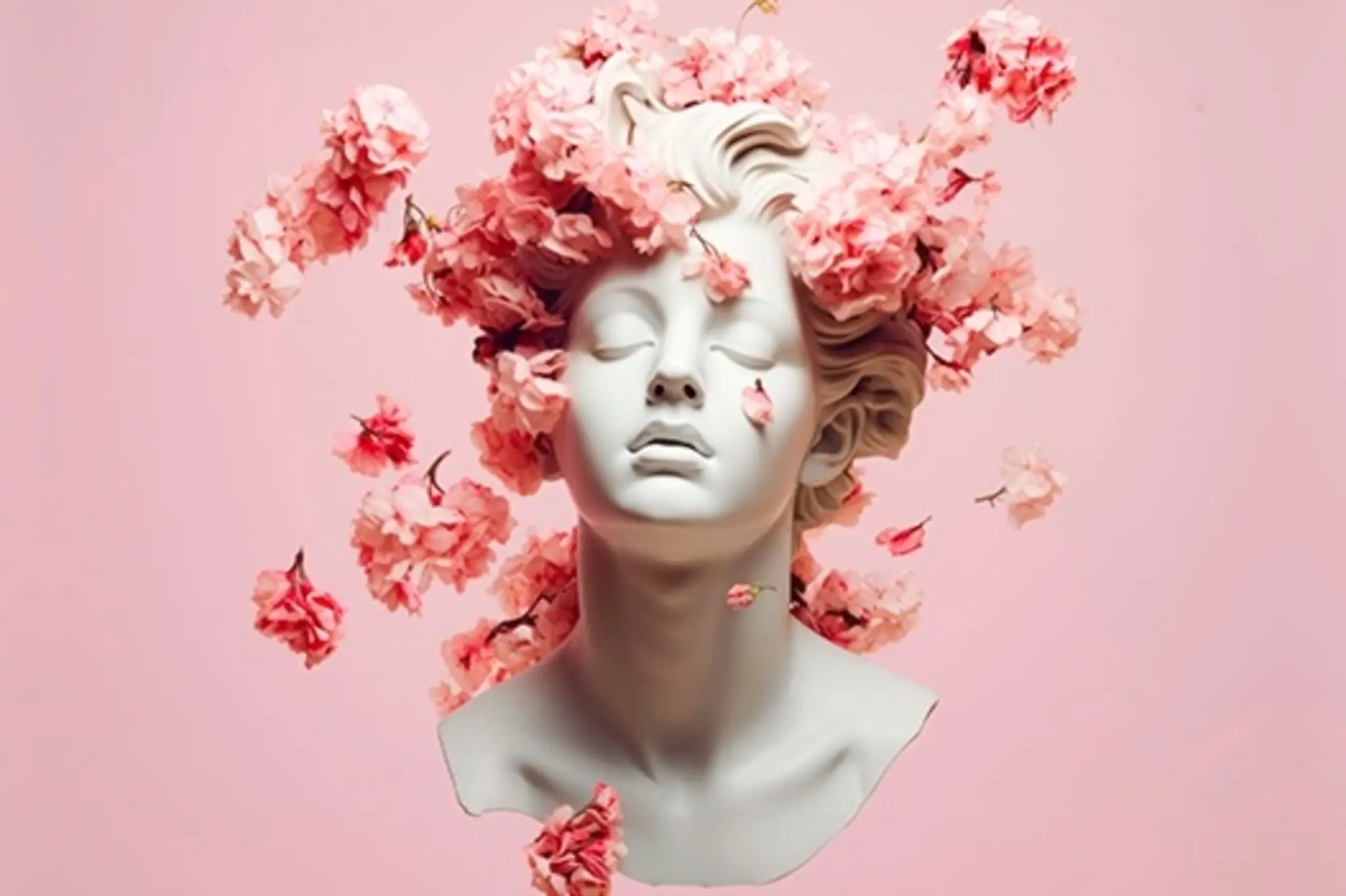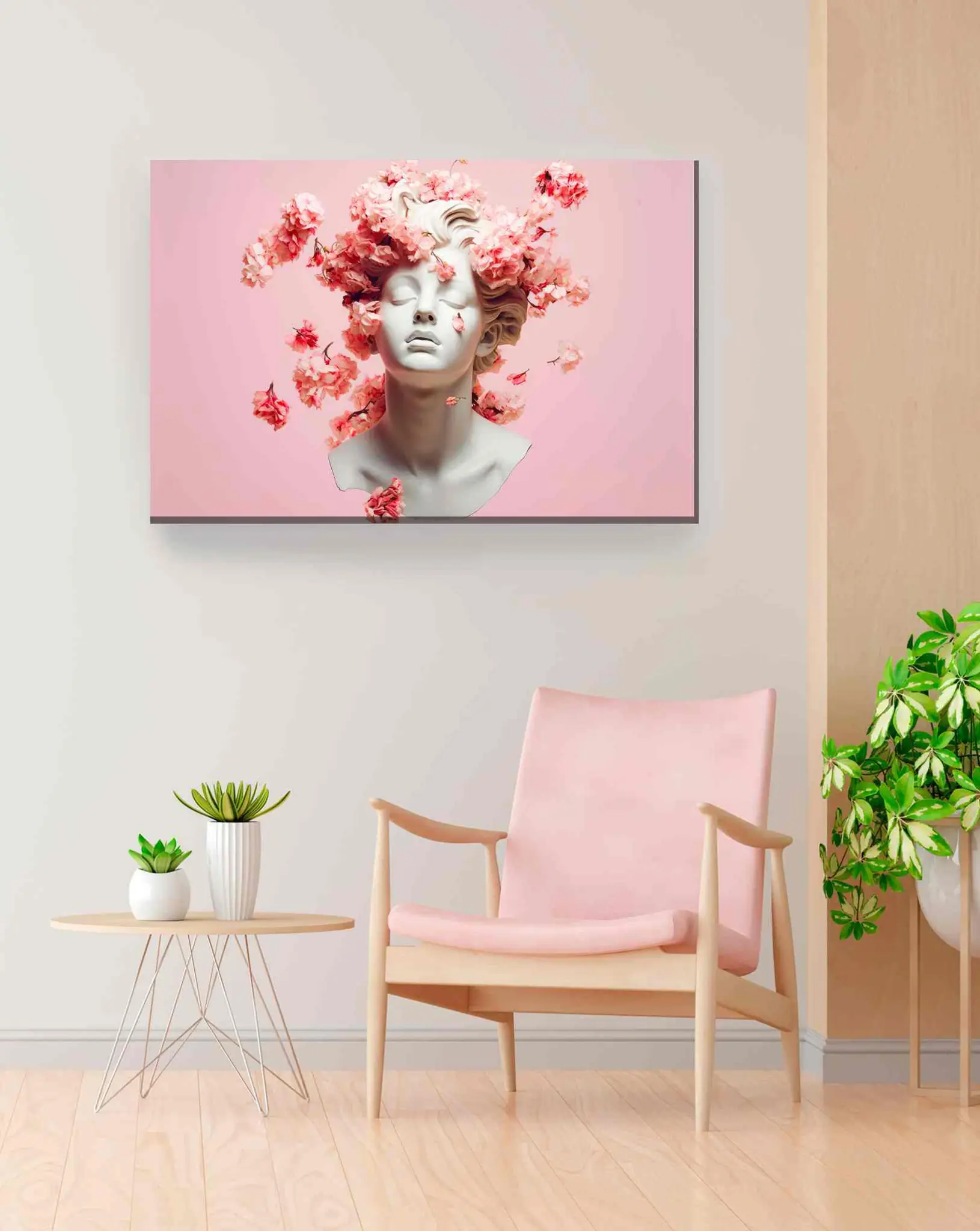 Cuadro en lienzo canvas decorativo escultura con flores tonos rosa