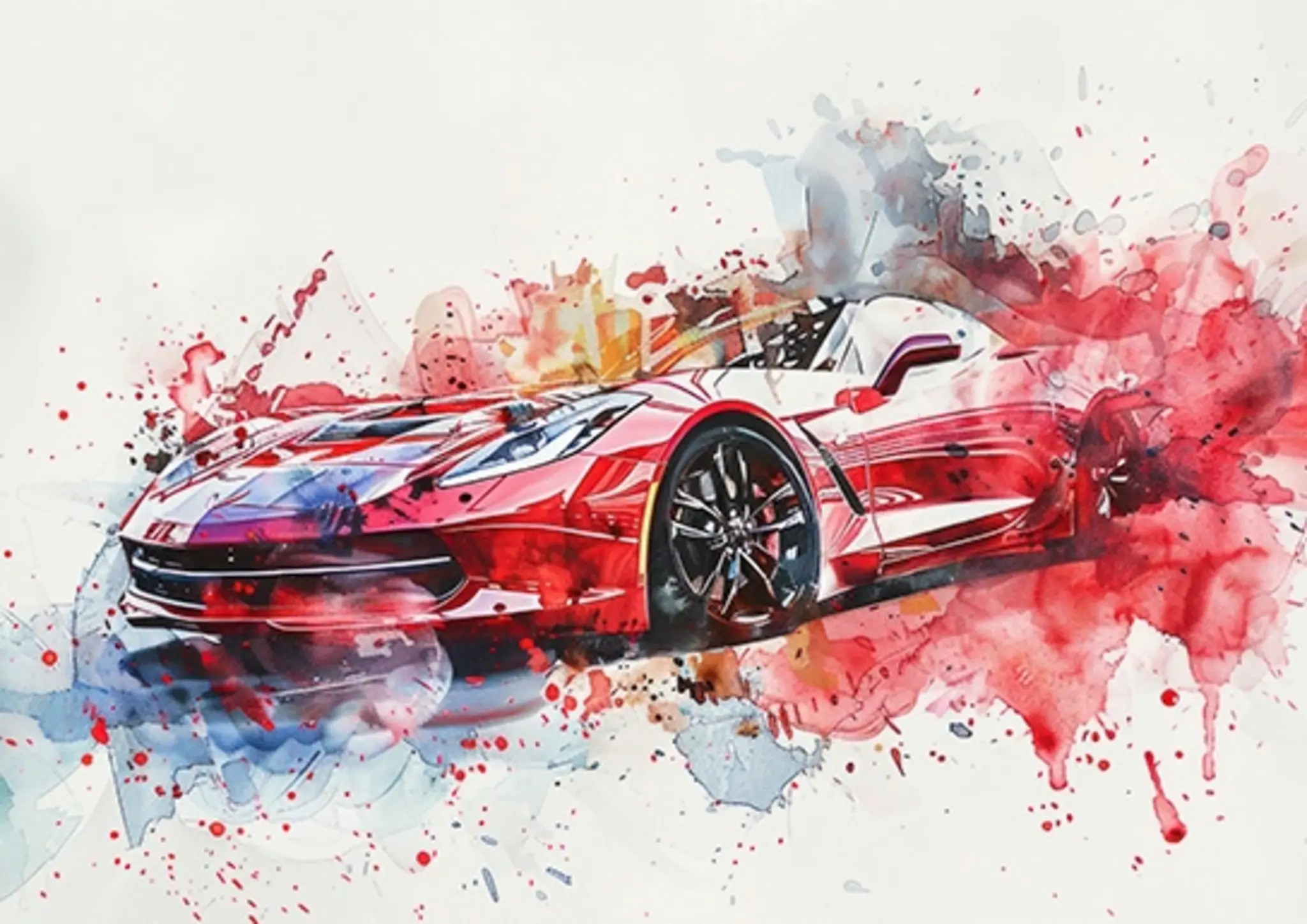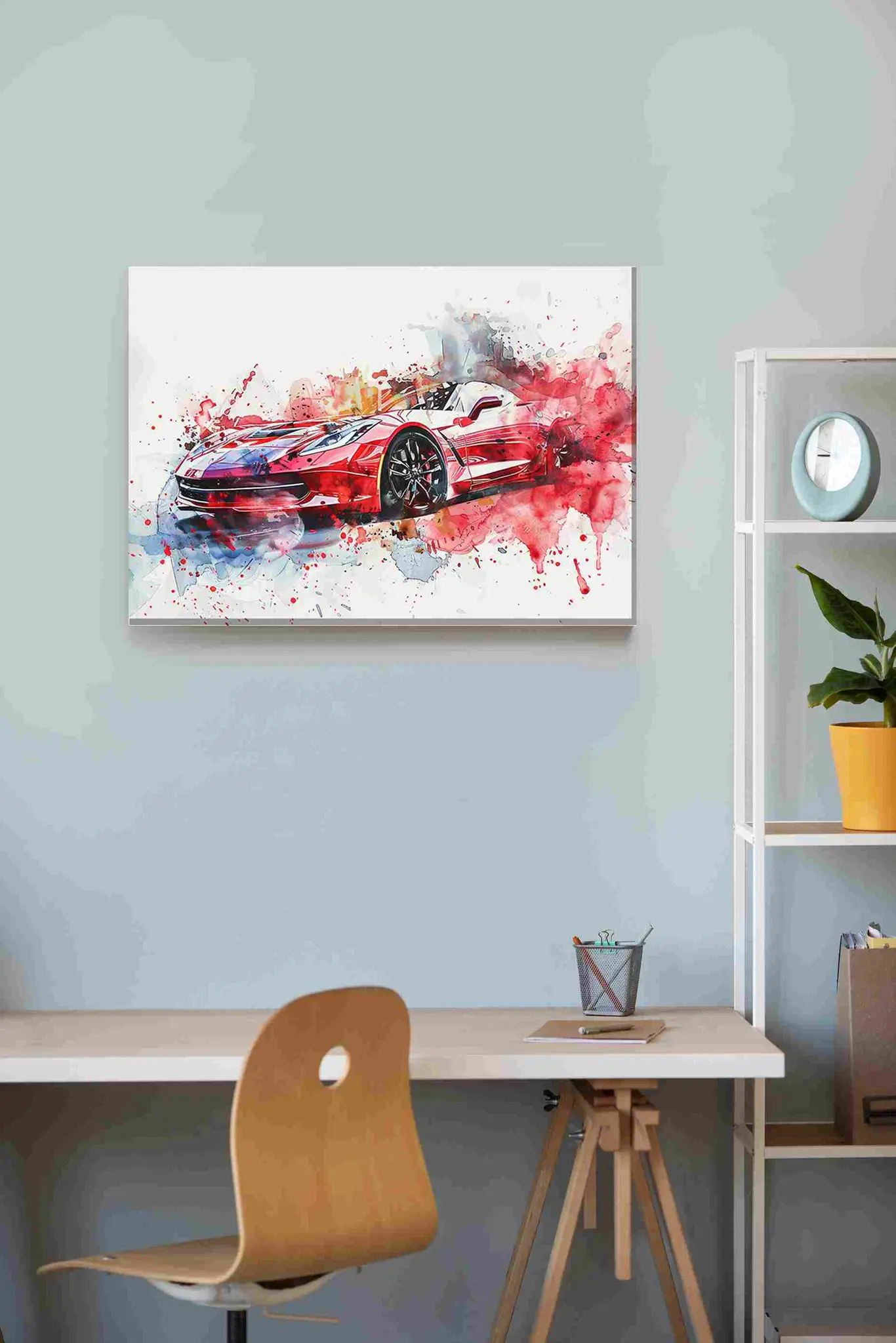 Cuadro en lienzo canvas decorativo auto ferrari estilo acuarela