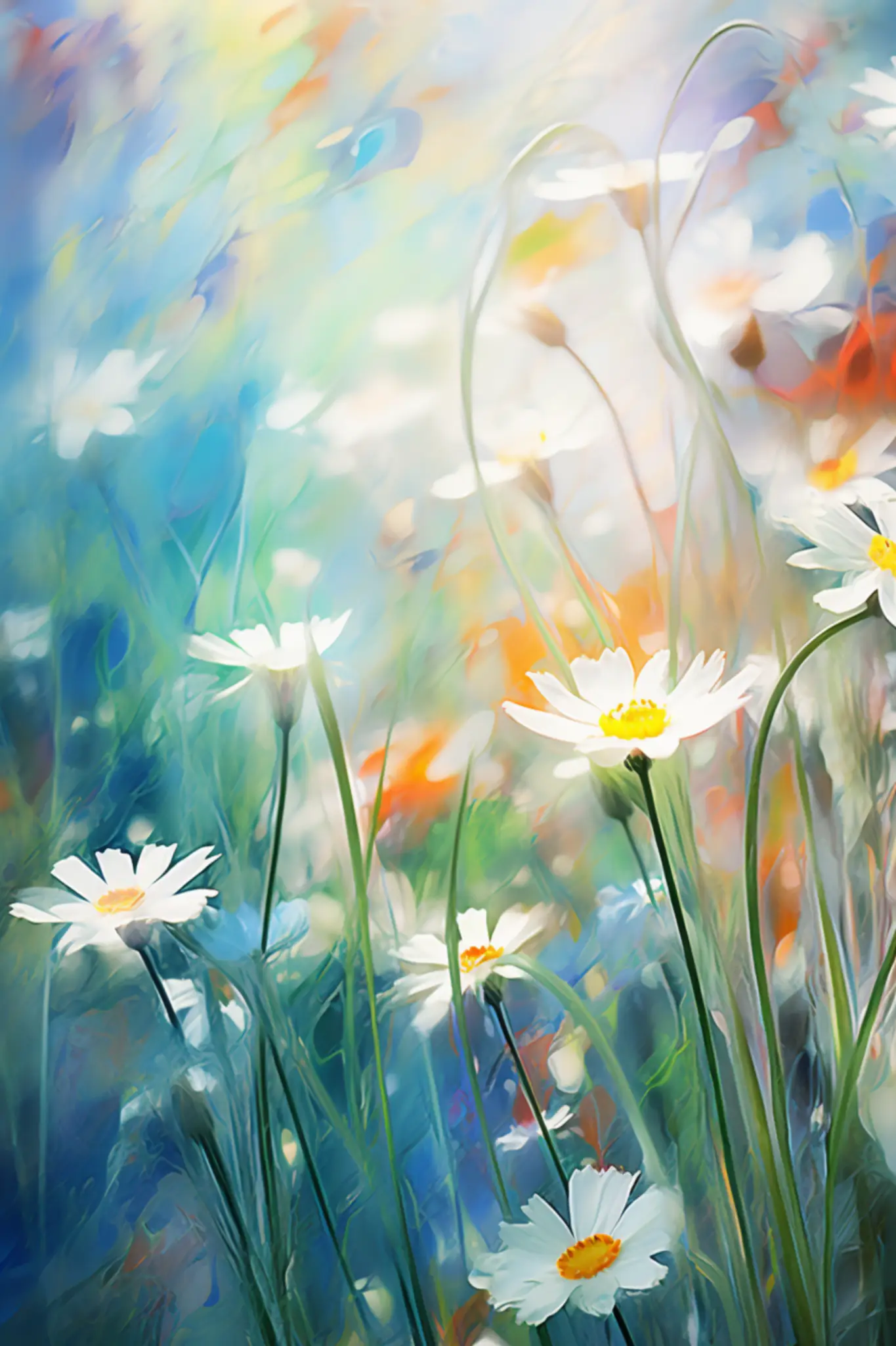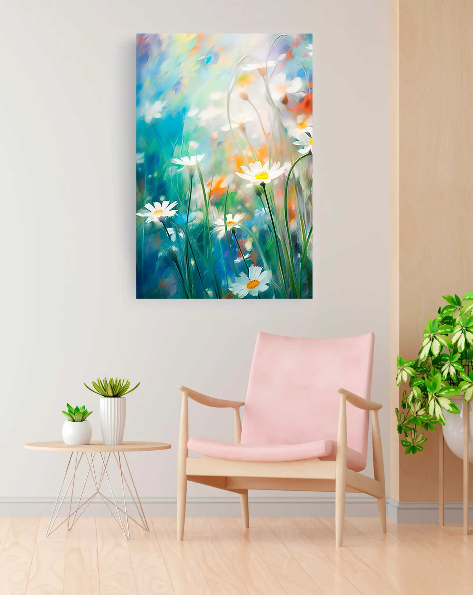 Cuadro en lienzo canvas decorativo florecitas blancas pinceladas