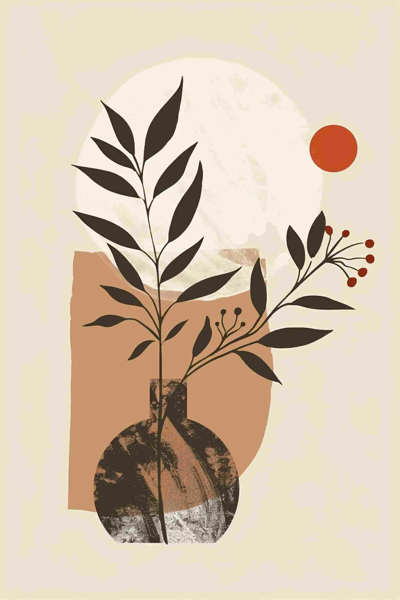 Cuadro en lienzo canvas decorativo florero beige con líneas suaves