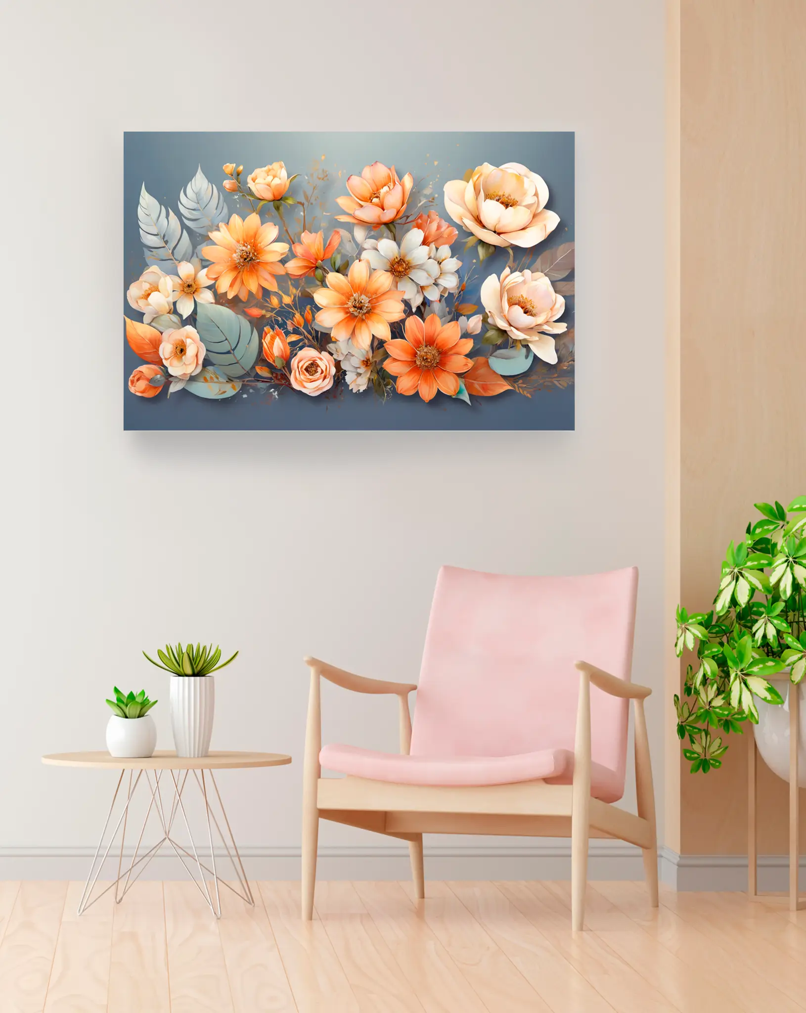 Cuadro en lienzo canvas decorativo flores naranja blancas