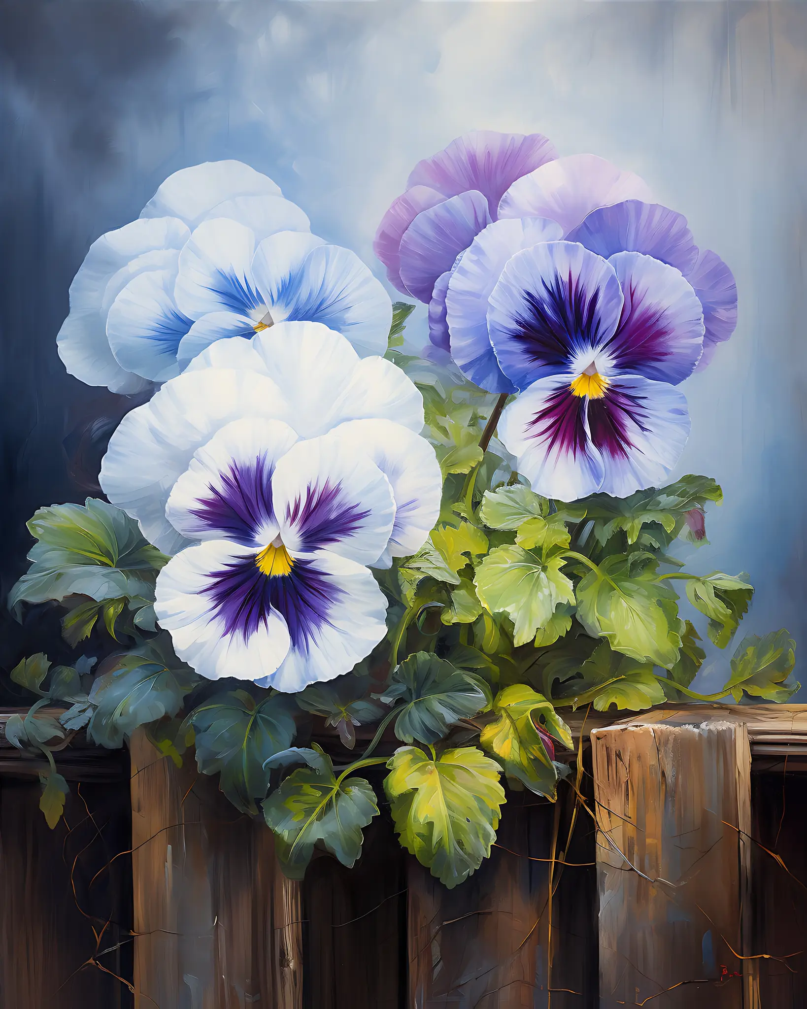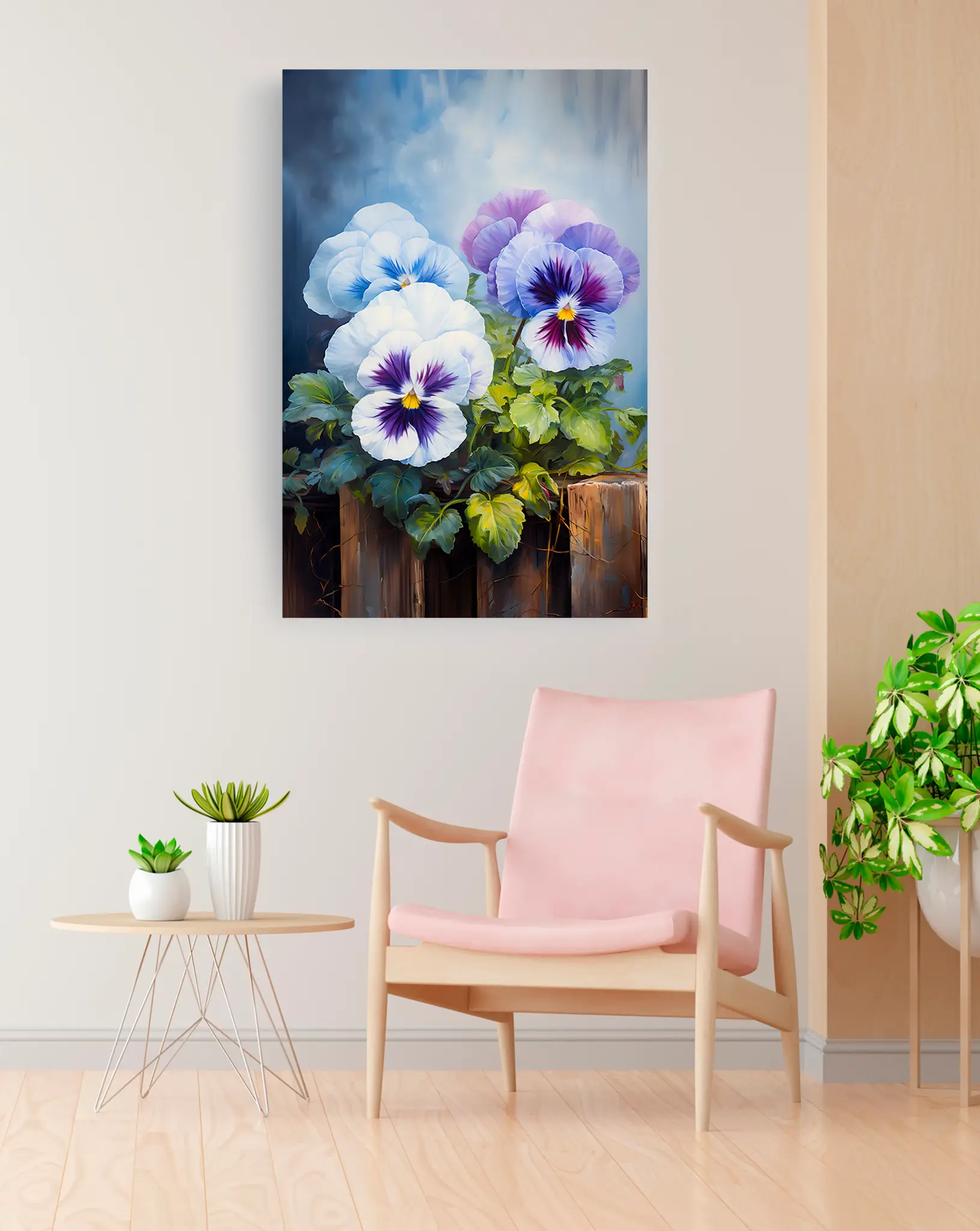Cuadro en lienzo canvas decorativo flores pensamiento pintura