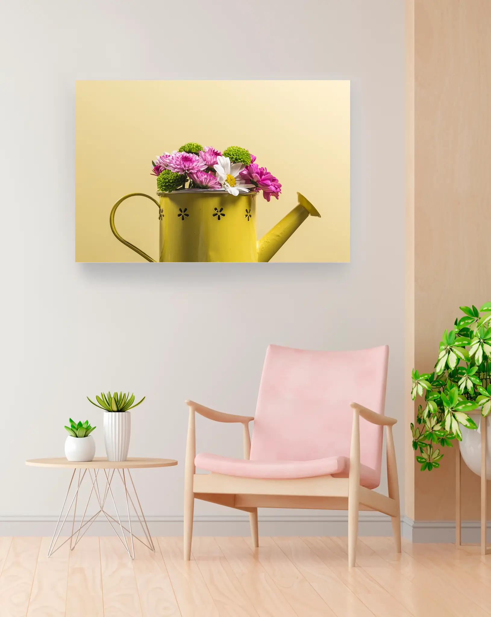 Cuadro en lienzo canvas decorativo flores regadera amarilla