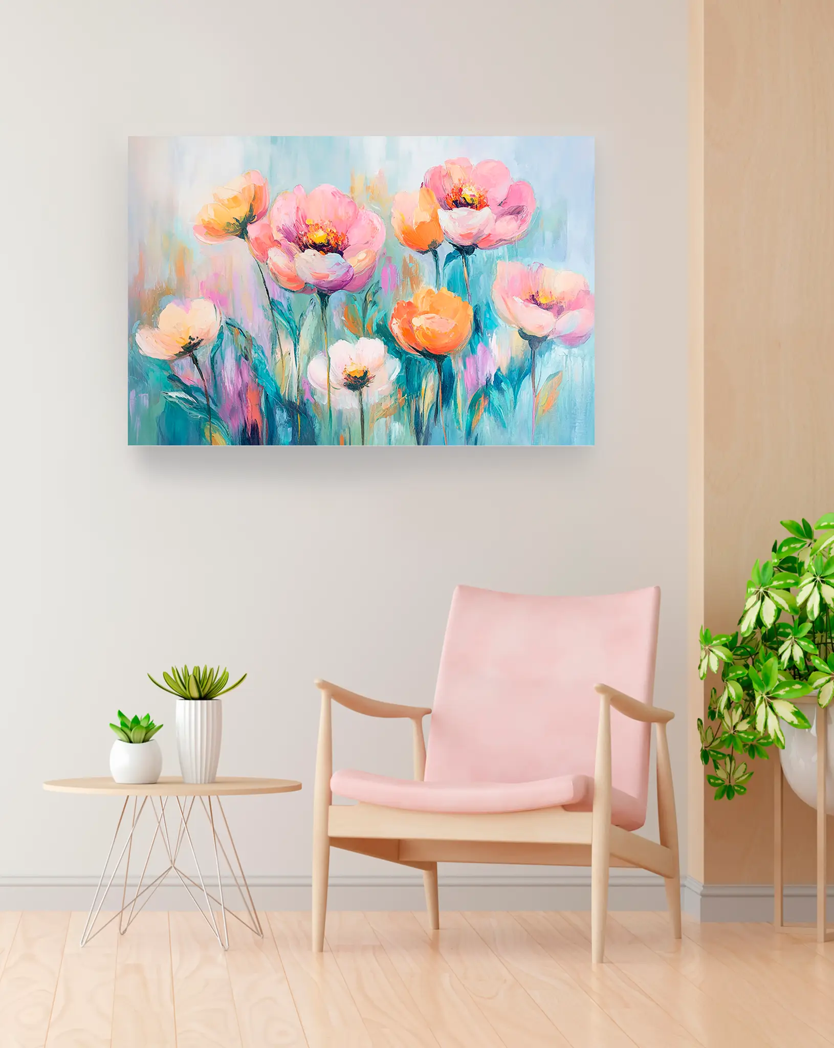 Cuadro en lienzo canvas decorativo flores rosadas pinceladas