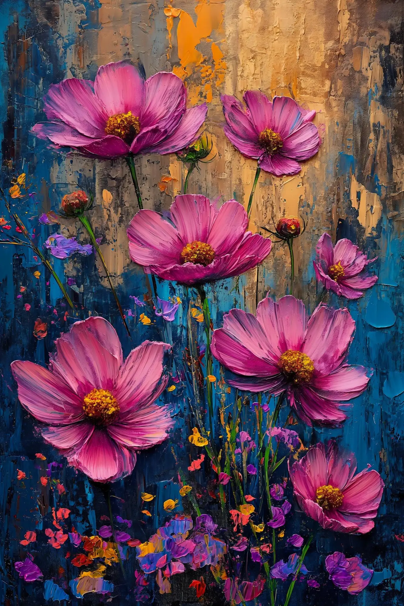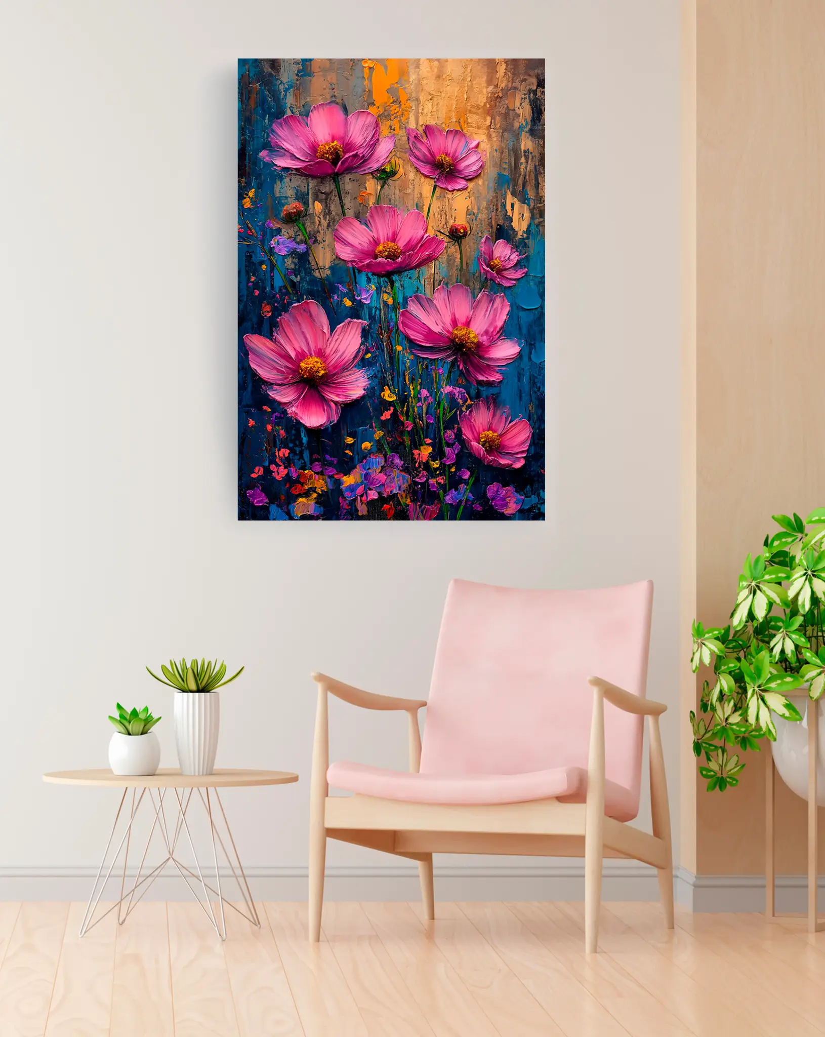 Cuadro en lienzo canvas decorativo flores rosas fondo desgastado