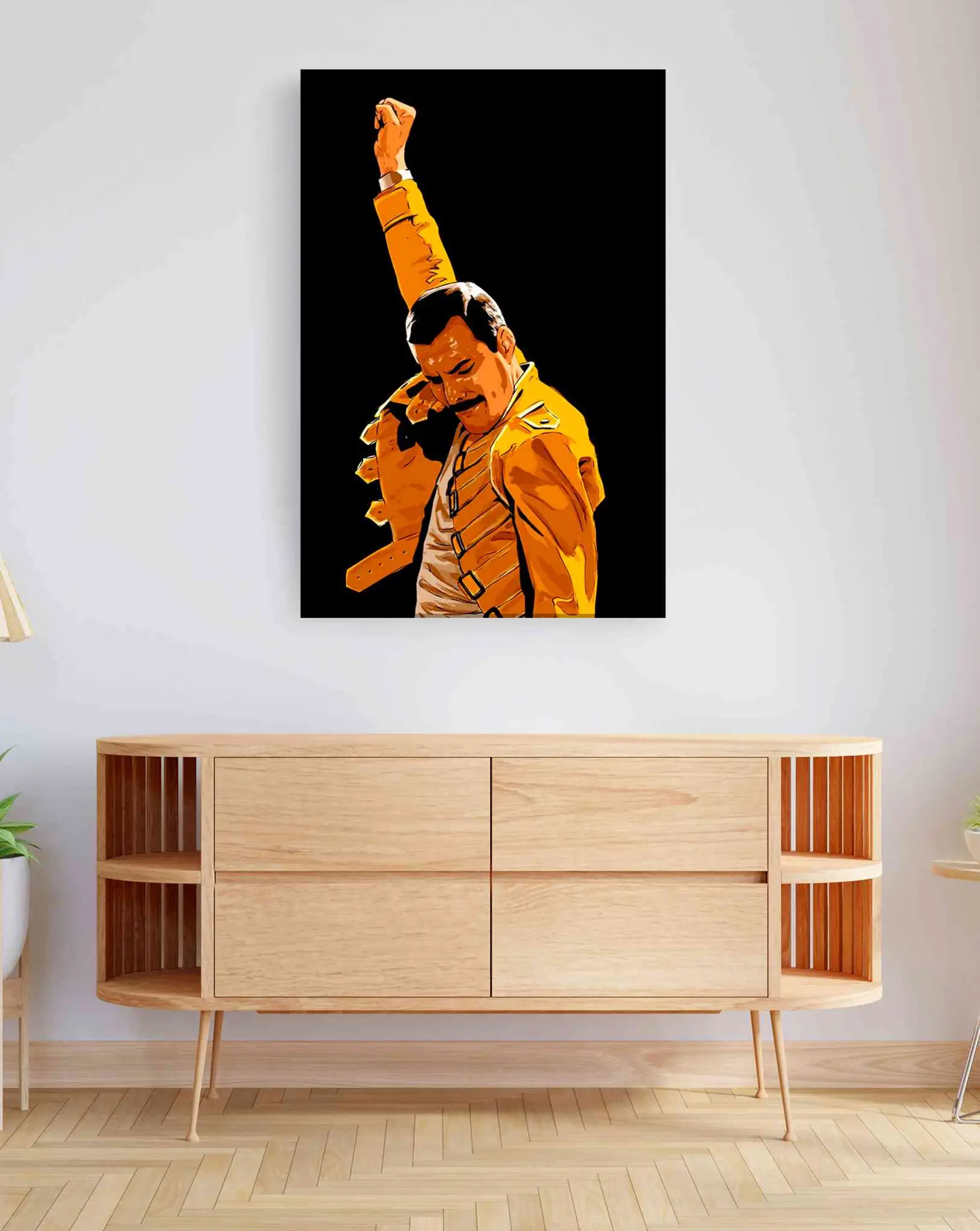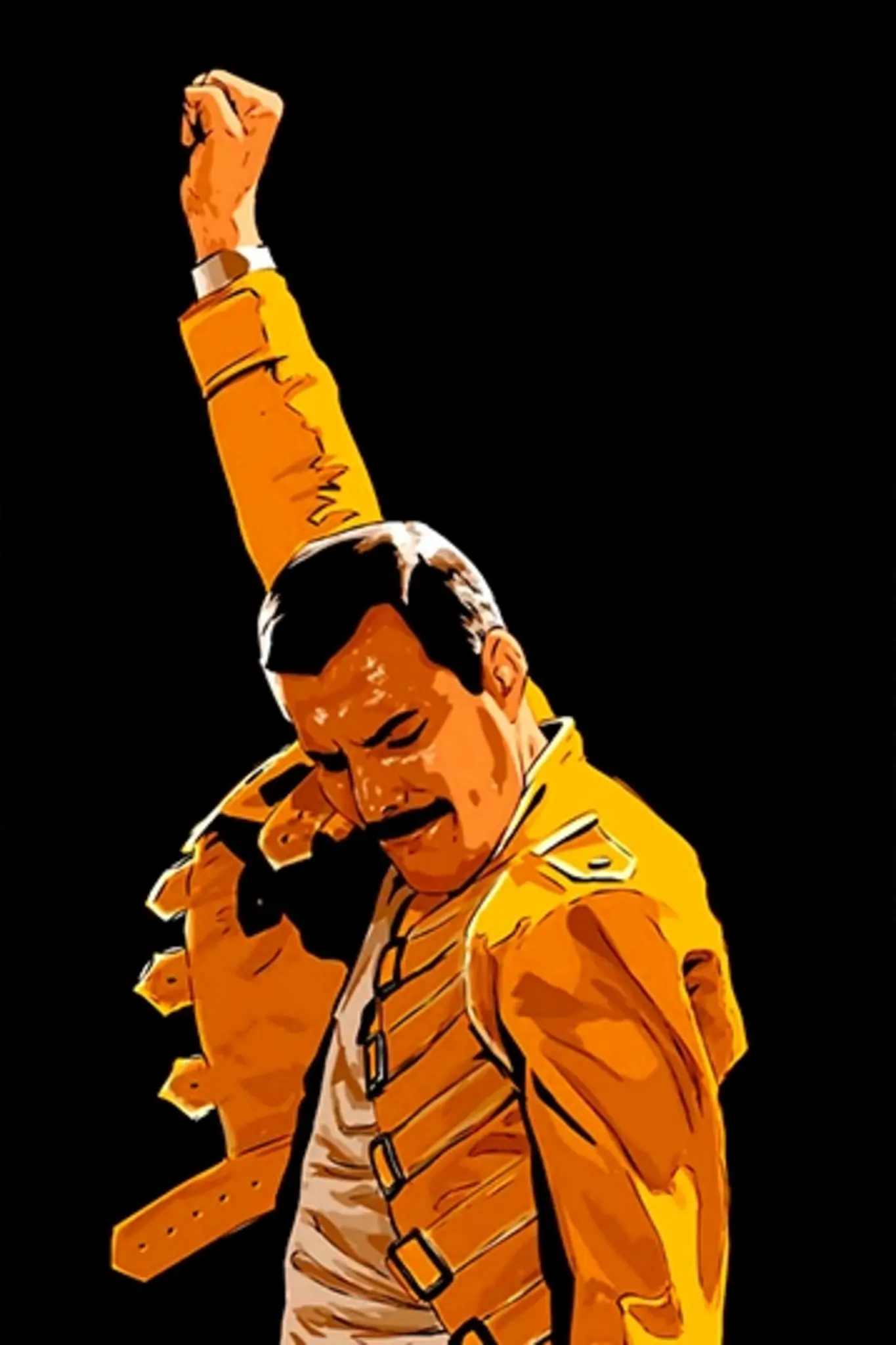 Cuadro en lienzo canvas decorativo Freddie Mercury en tonos naranja sobre fondo negro