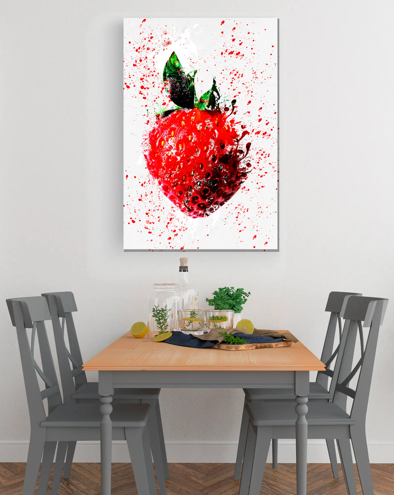 Cuadro en lienzo canvas decorativo fresas gotas