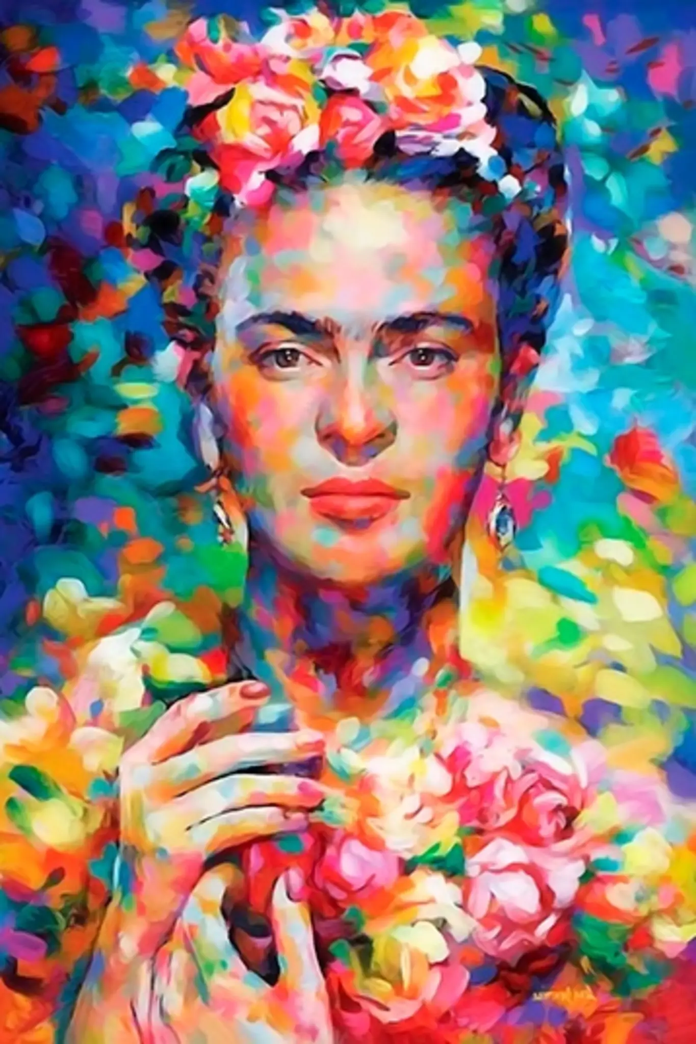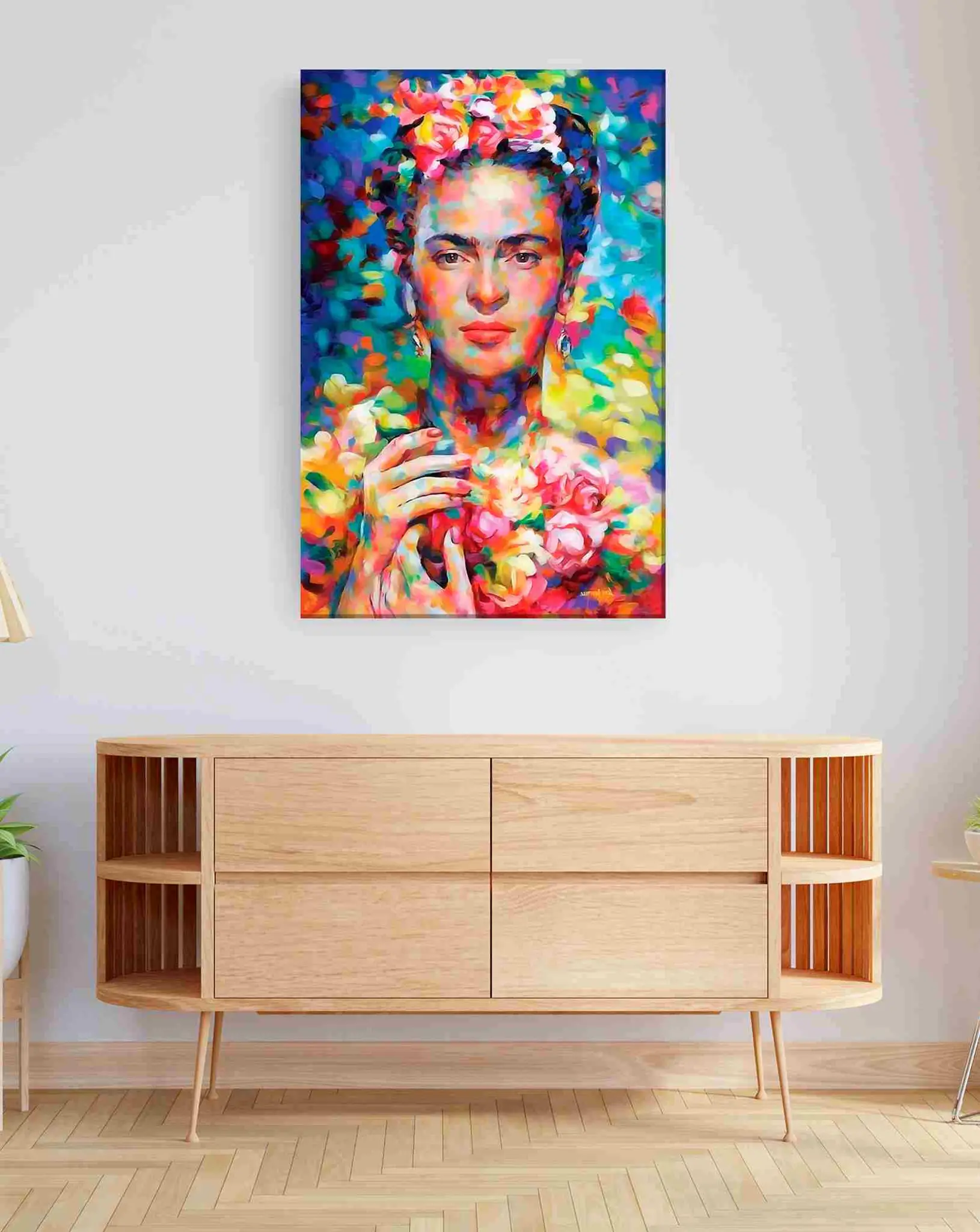 Cuadro en lienzo canvas decorativo Frida Kahlo estilo pinceladas a color