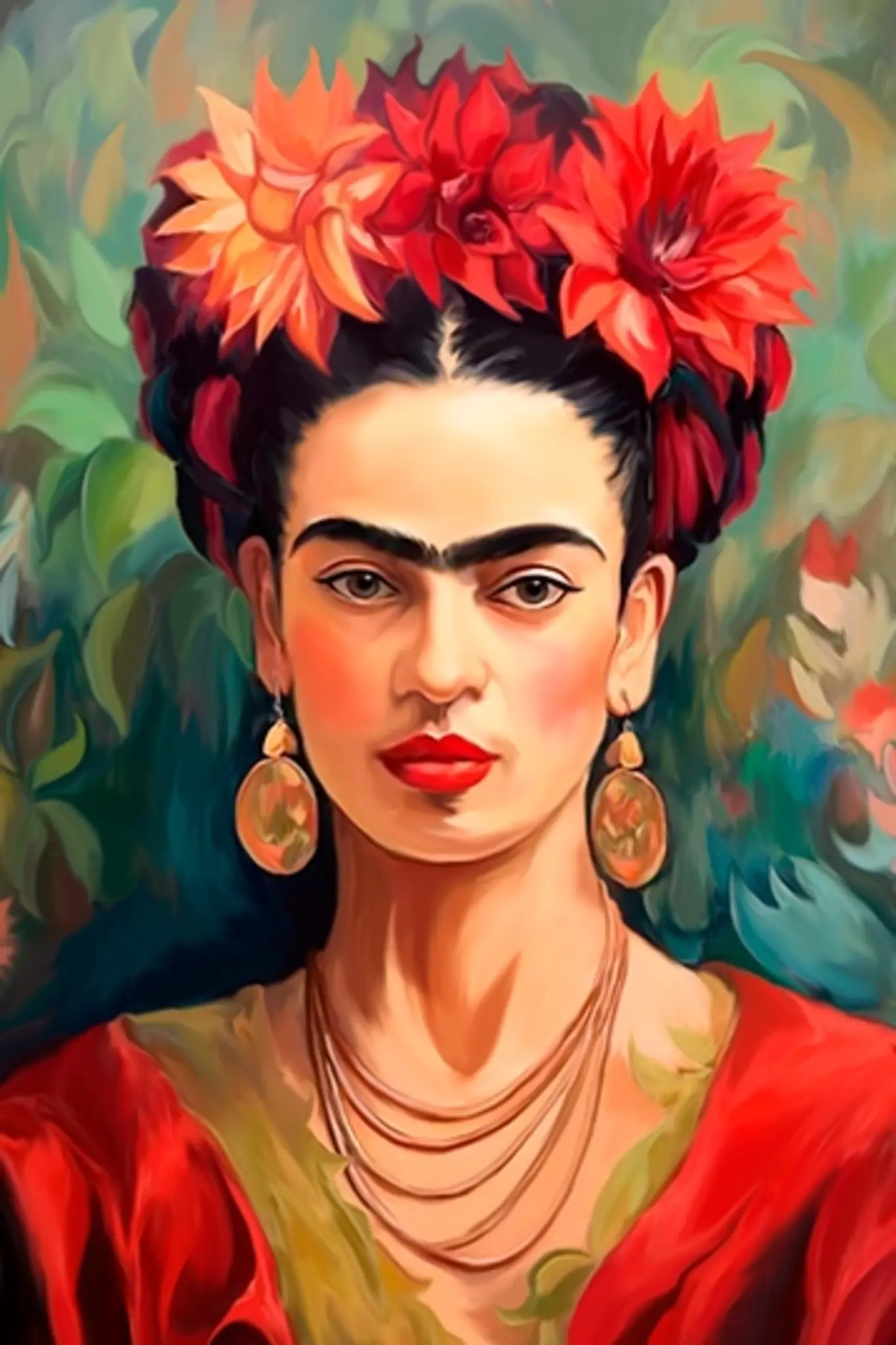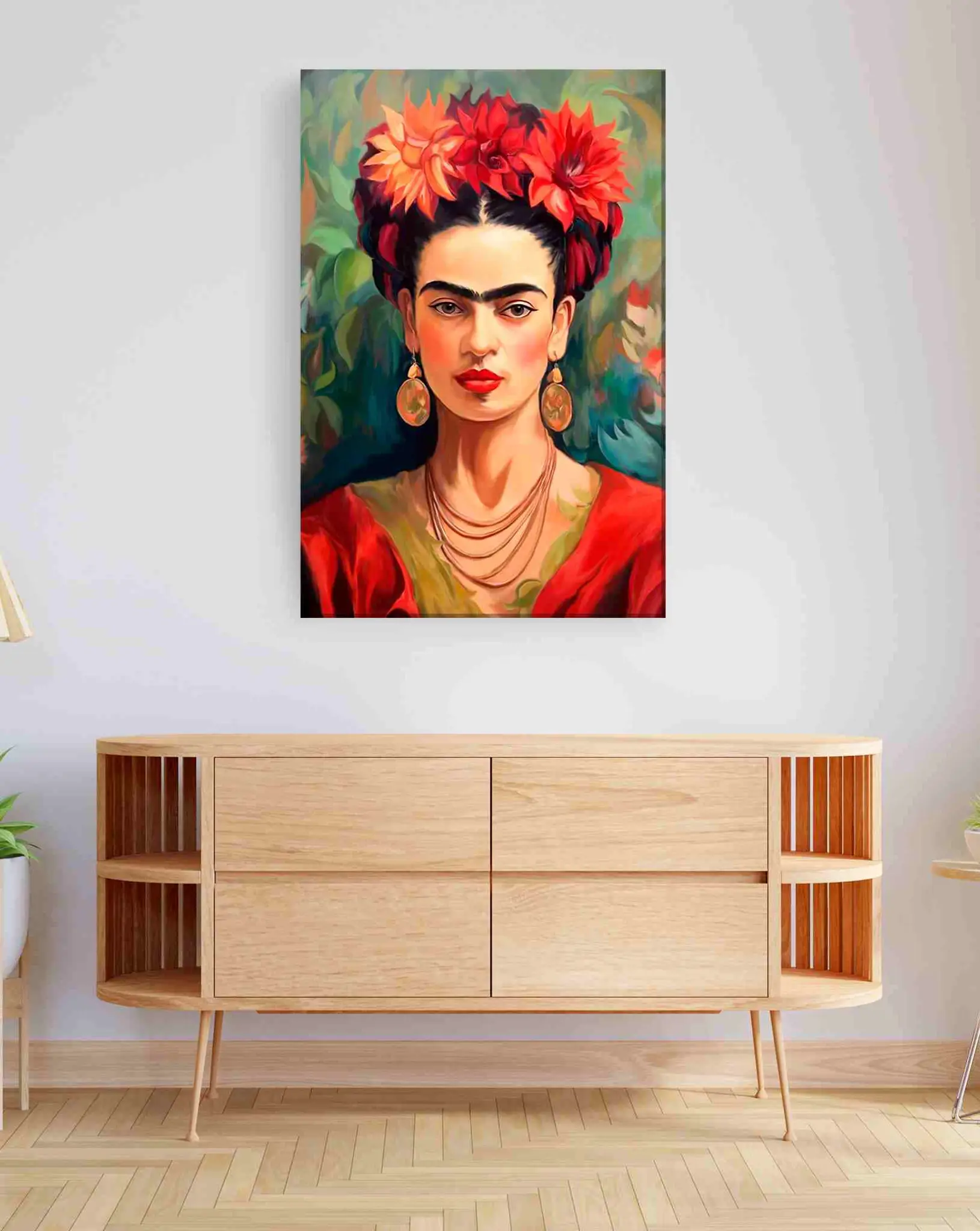 Cuadro en lienzo canvas decorativo Frida Kahlo con flores estilo pintura