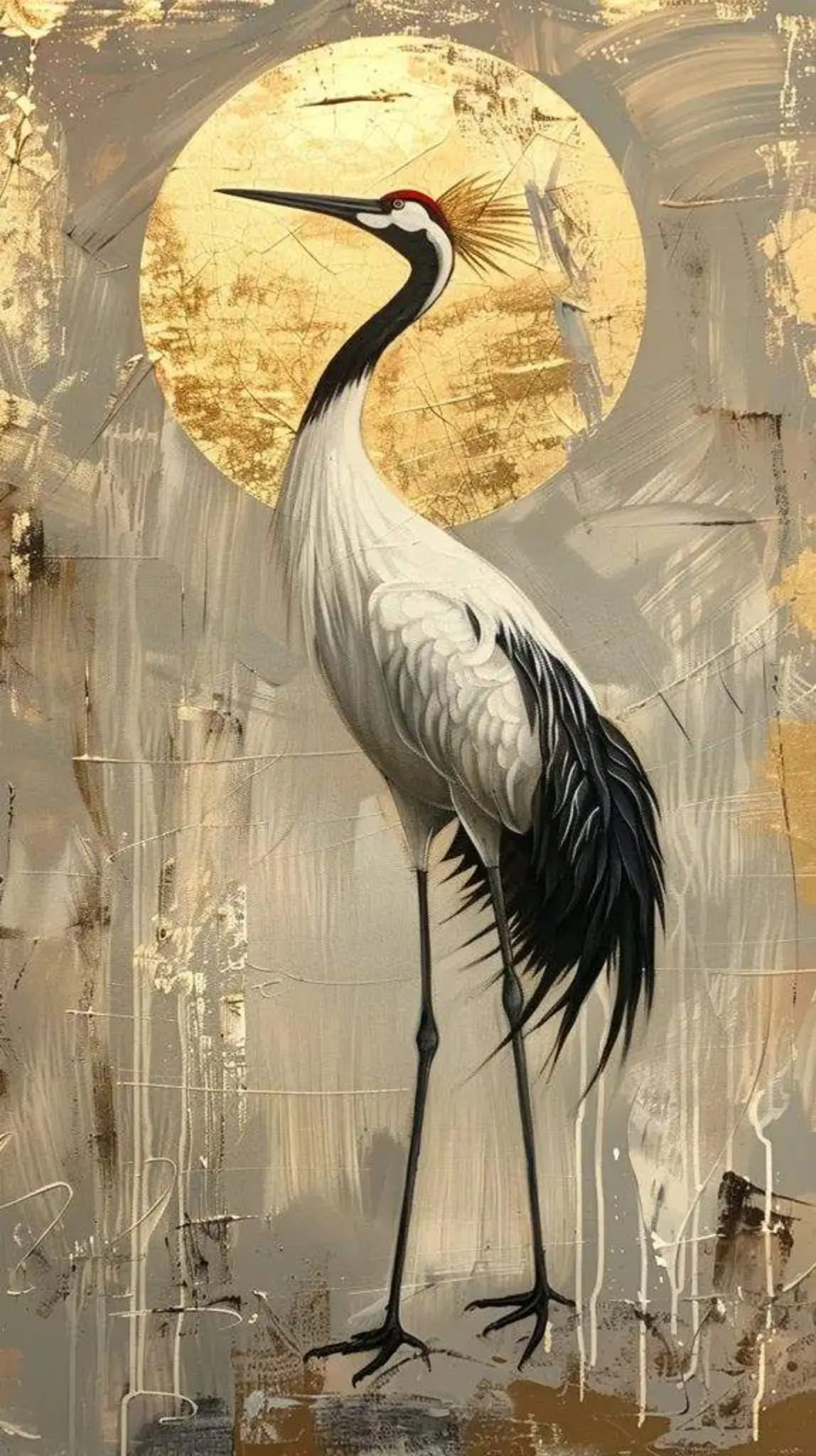Cuadro en lienzo canvas decorativo garza rodeada de destellos dorados