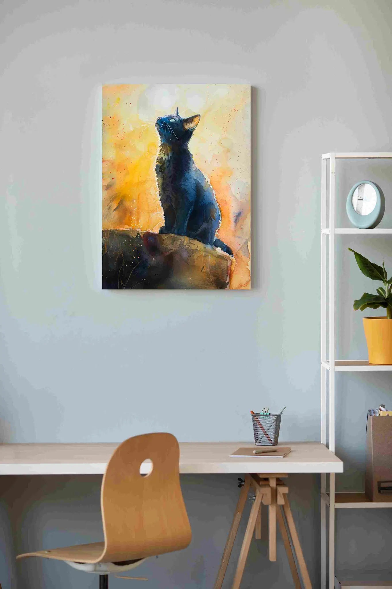 Cuadro en lienzo canvas decorativo gato impreso tipo acuarela