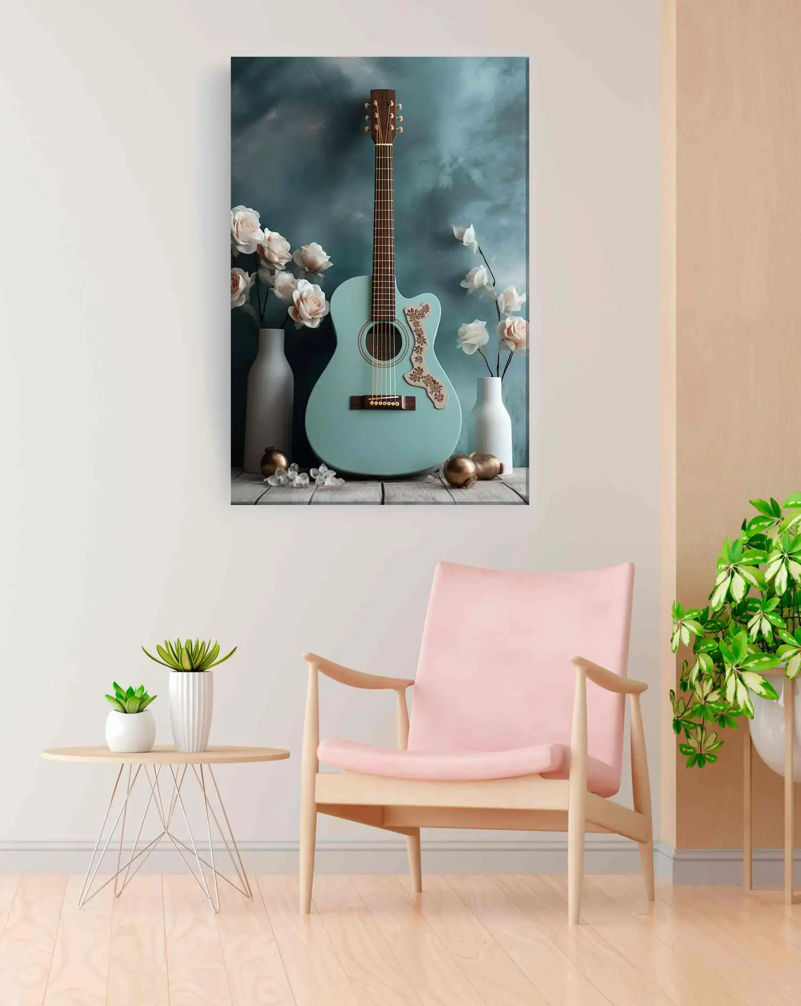 Cuadro en lienzo canvas decorativo guitarra de color azul