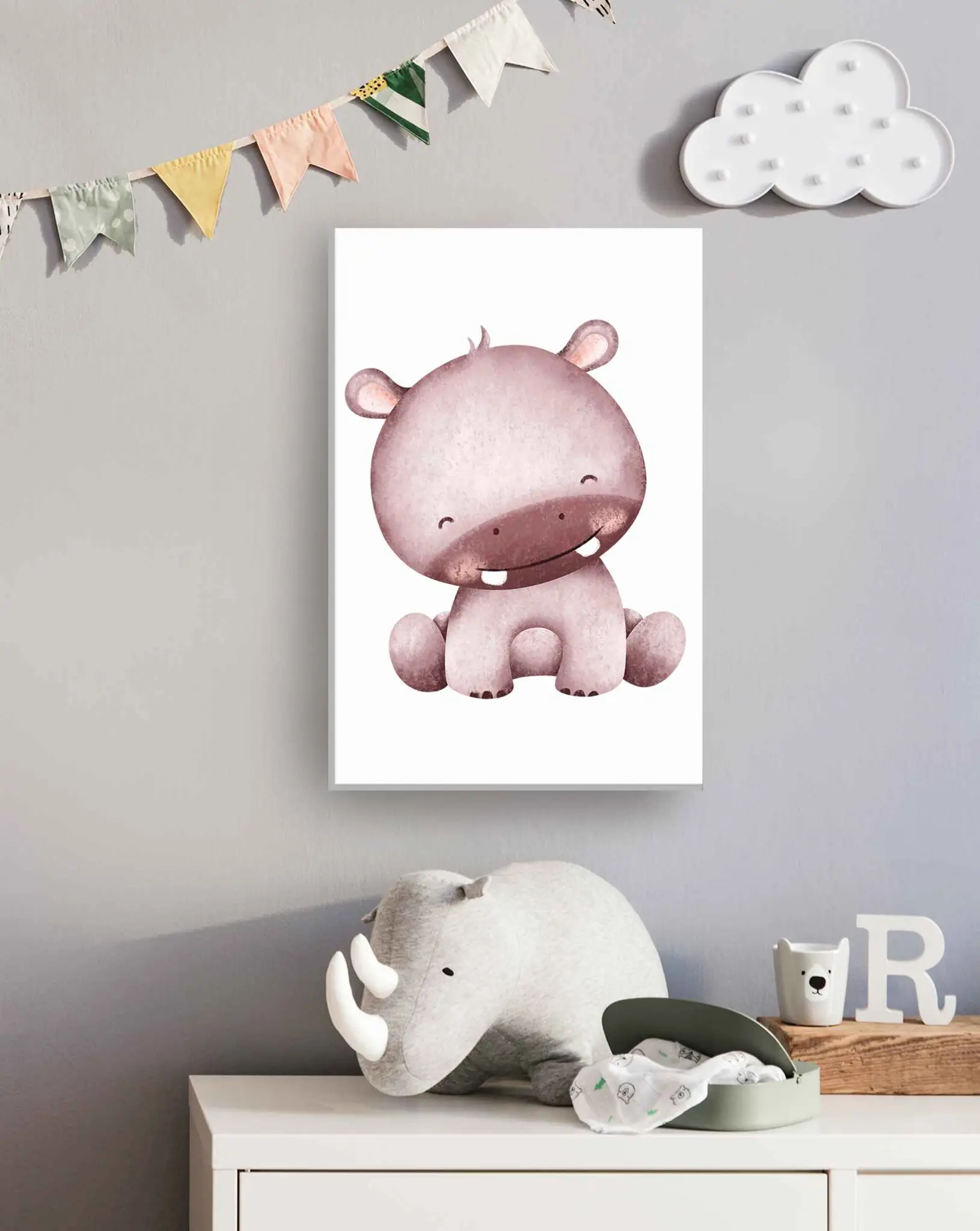 Cuadro en lienzo canvas decorativo tierno bebé hipopótamo