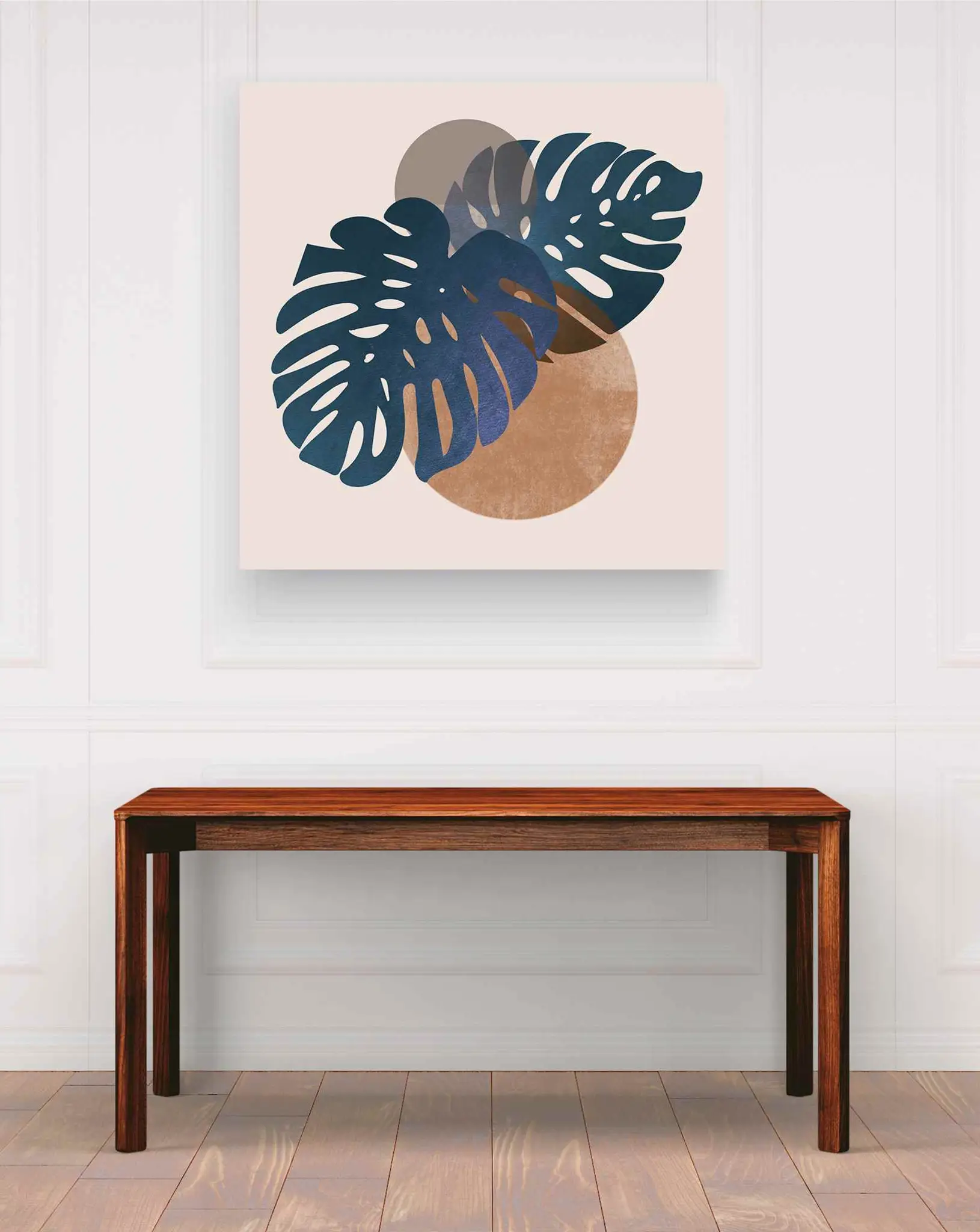 Cuadro en lienzo canvas decorativo elegante de hojas y círculos