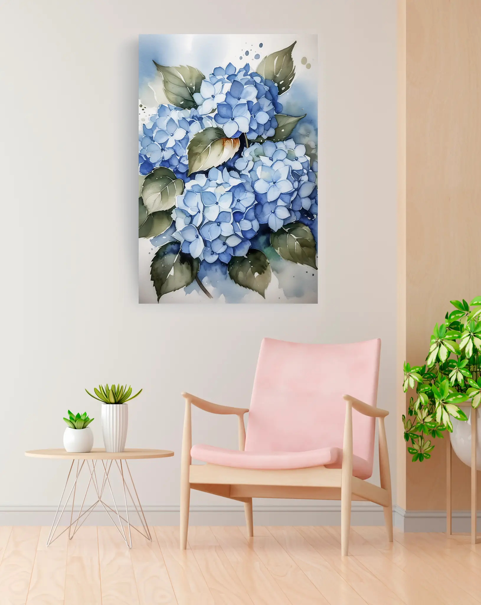 Cuadro en lienzo canvas decorativo hortensias azules acuarela