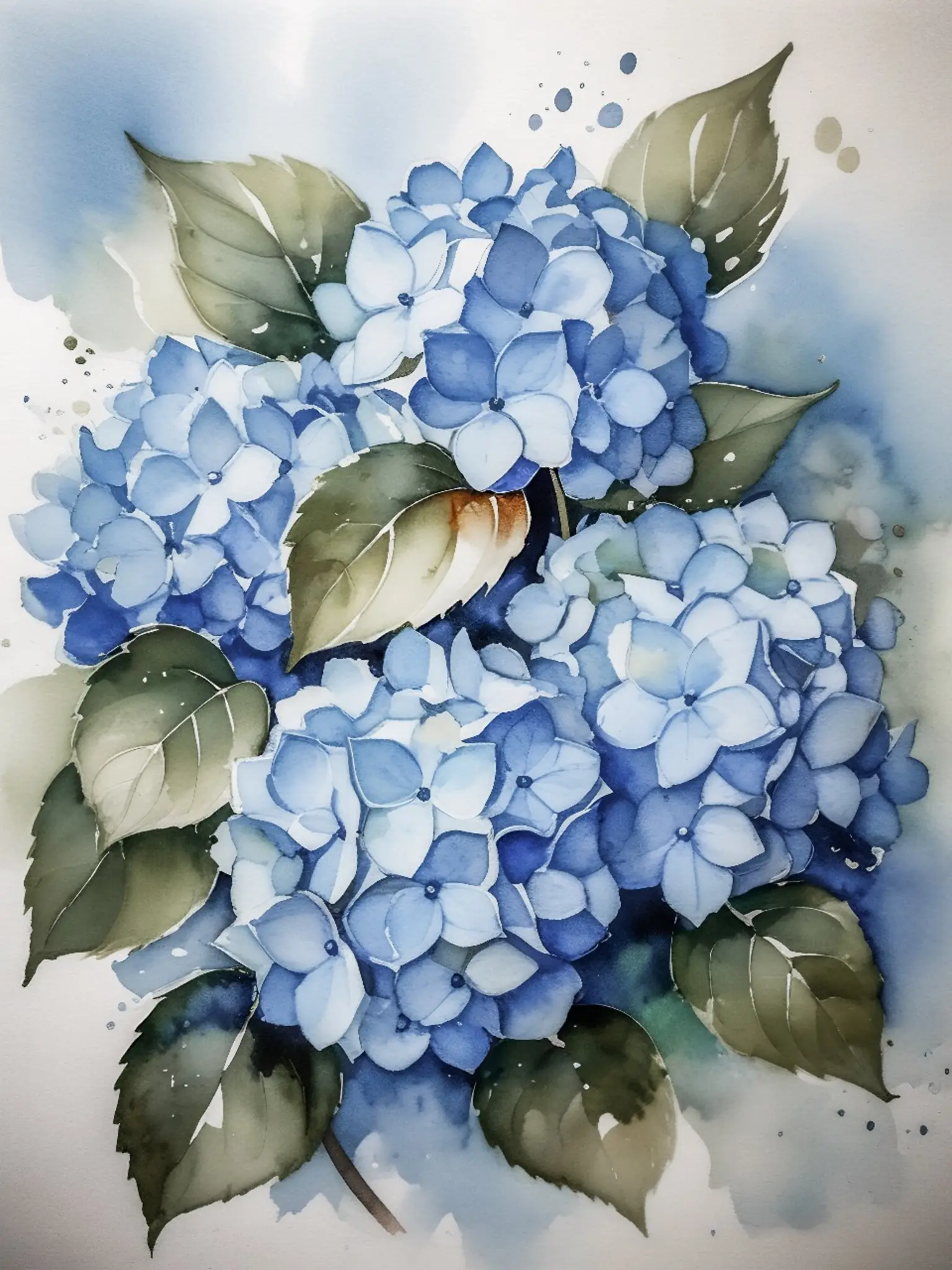 Hortensias azules acuarela
