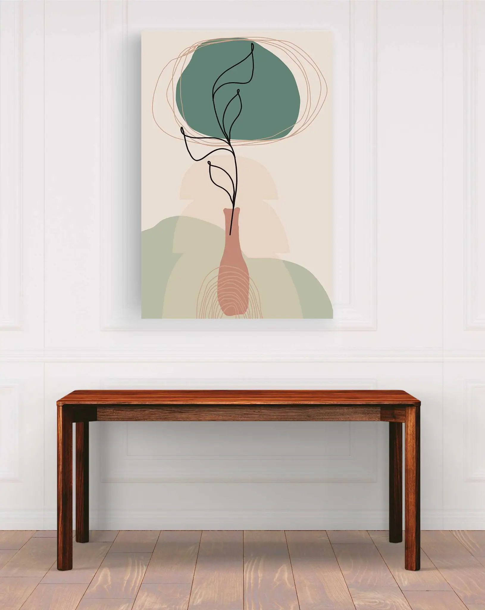 Cuadro en lienzo canvas decorativo jarrón con manchas en tonos verdes