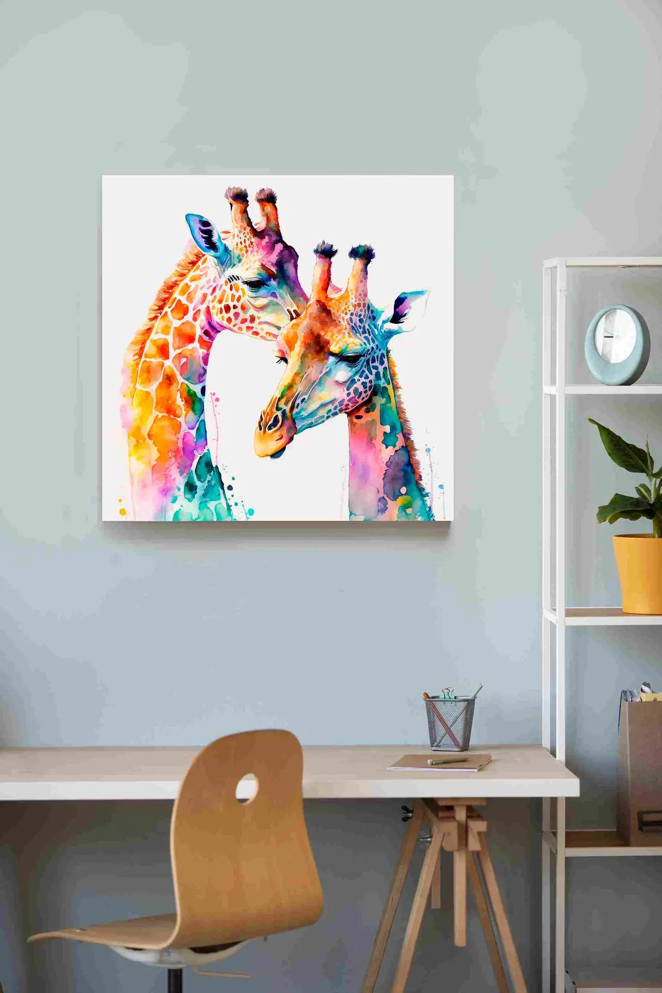 Cuadro en lienzo canvas decorativo jirafas estilo acuarela