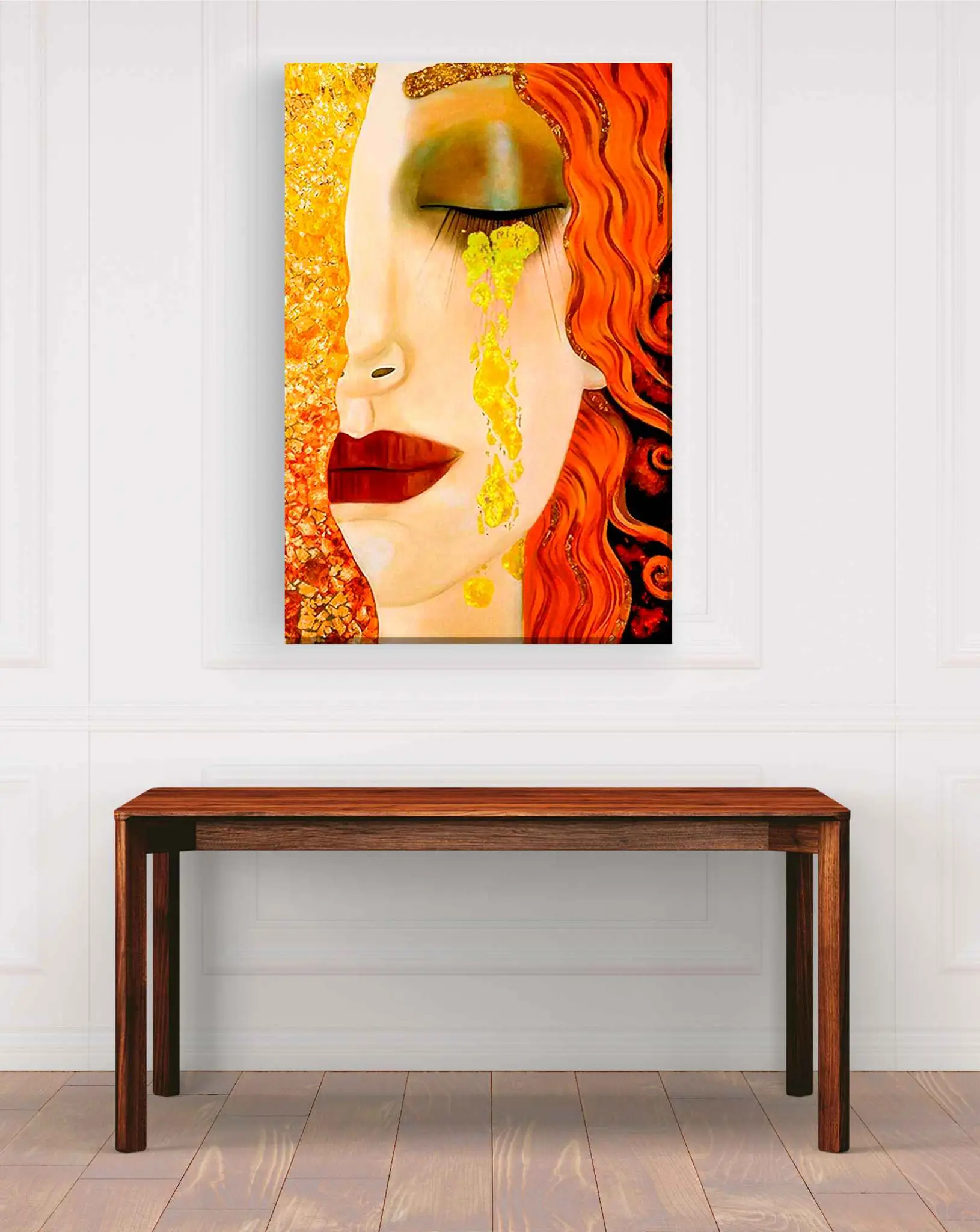 Cuadro en lienzo canvas decorativo de un un rostro con lágrimas de oro