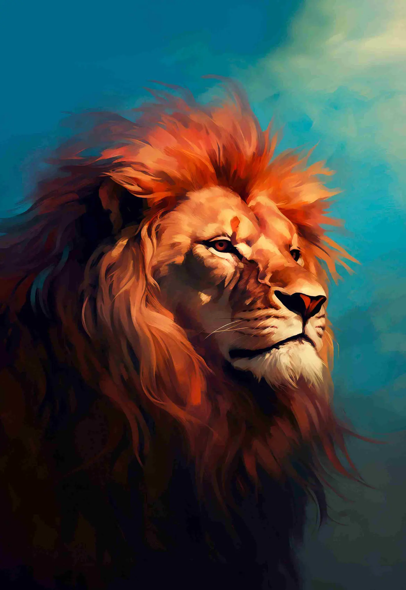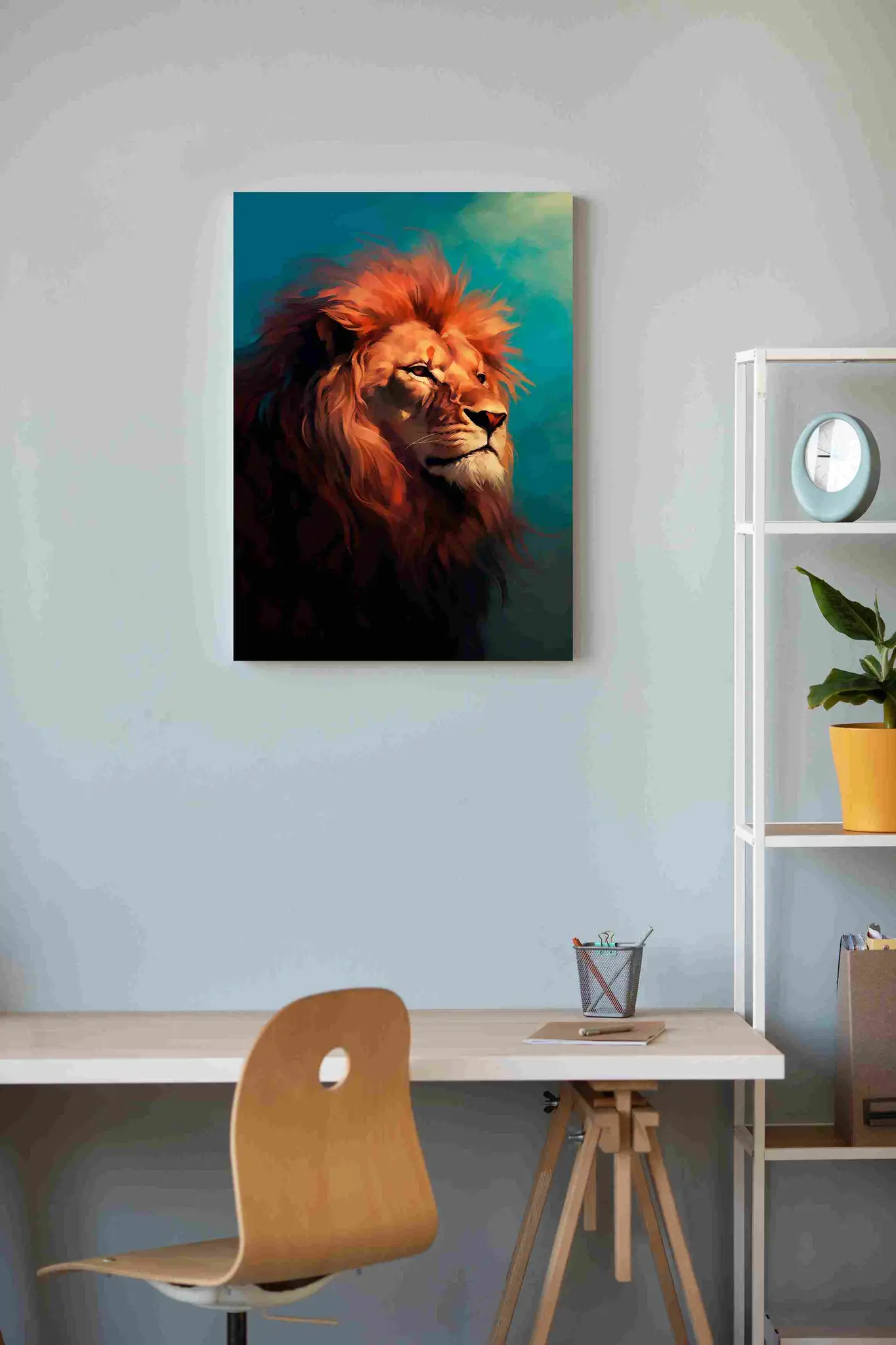 Cuadro en lienzo canvas decorativo león impreso tipo acuarela con tonos turquesa