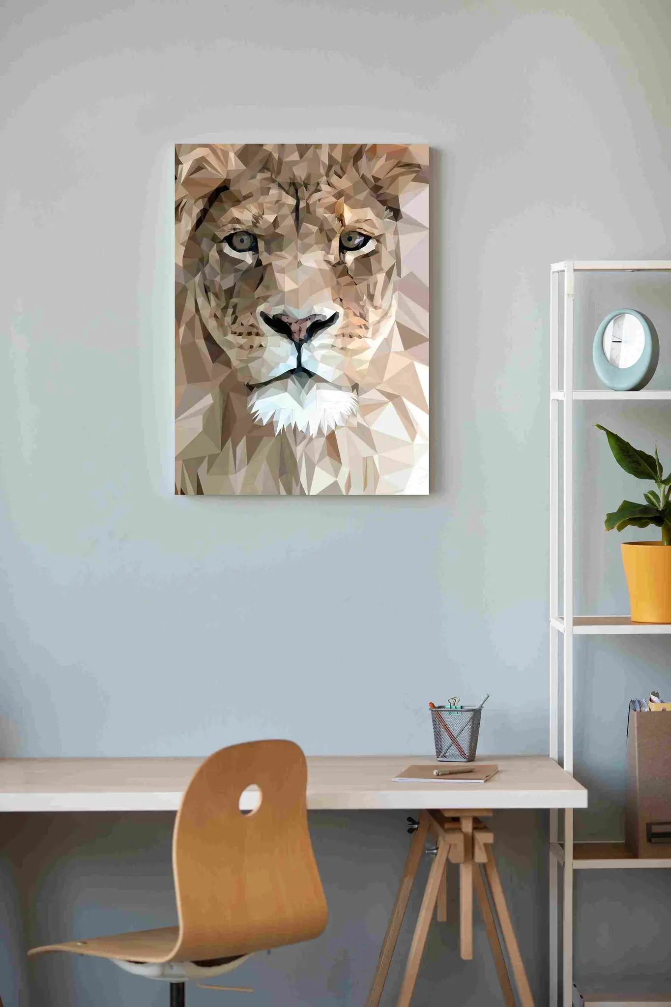Cuadro en lienzo canvas decorativo león compuesto por triángulos geométricos