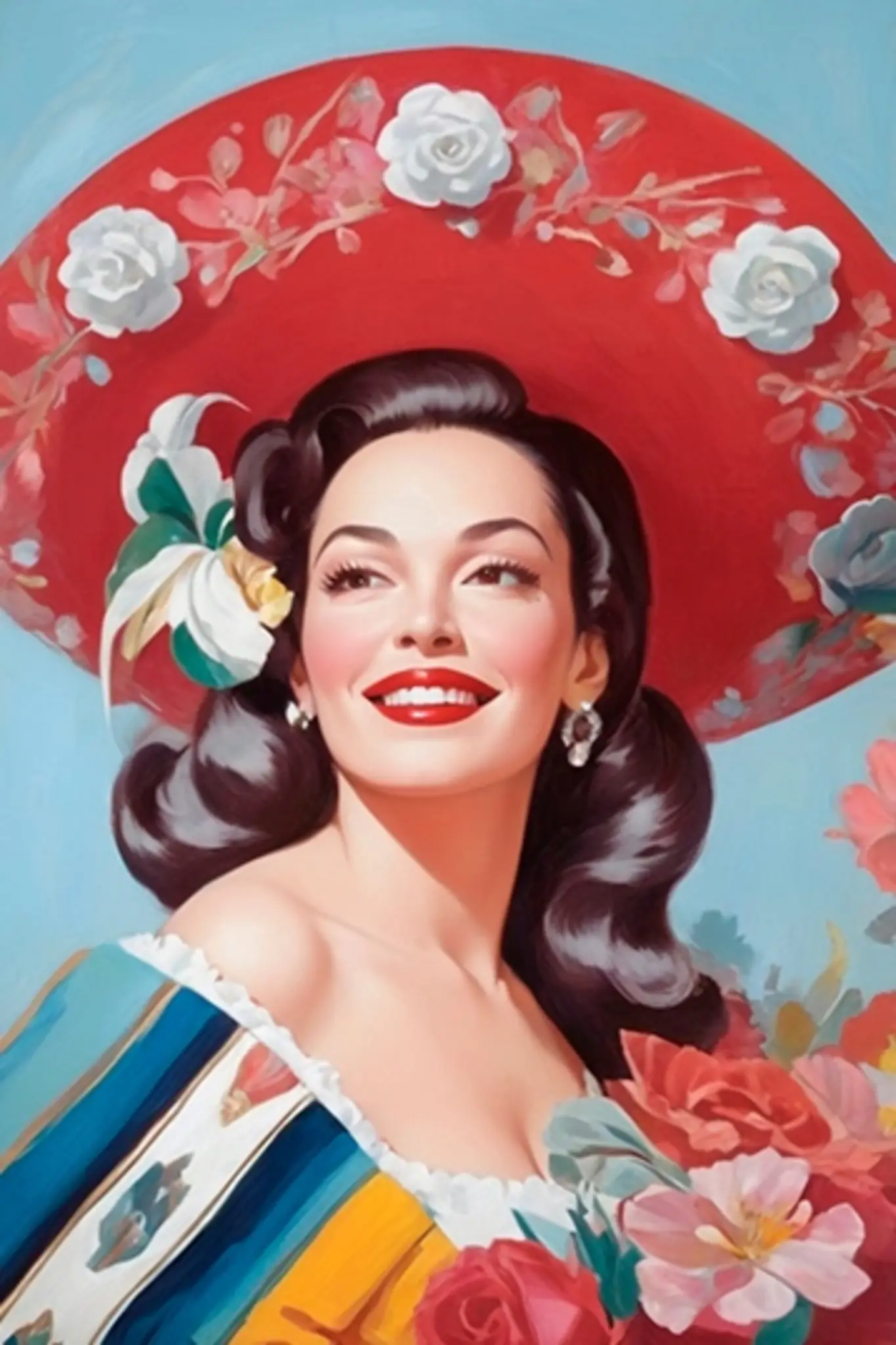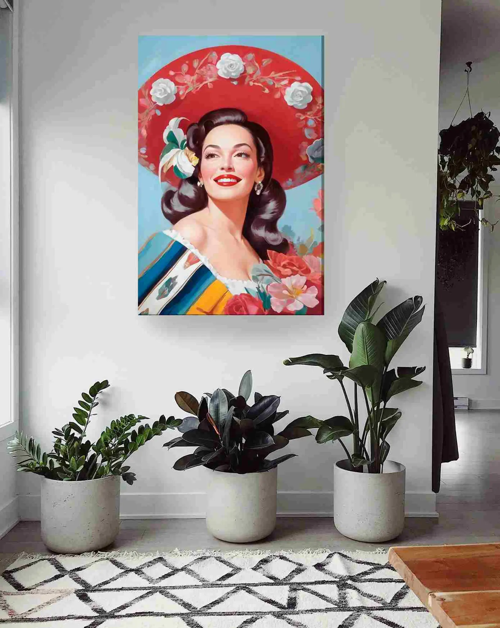 Cuadro en lienzo canvas decorativo mujer mexicana con sombrero estilo poster